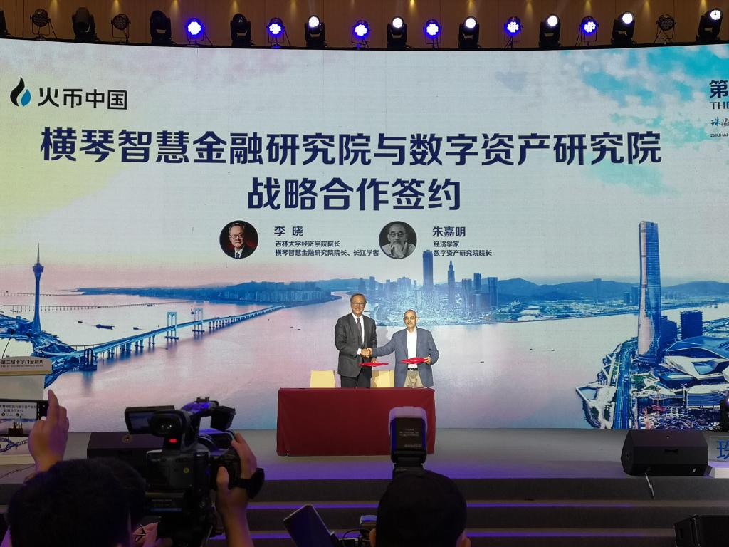 在金融周的分论坛“珠海-澳门‘区块链+特色金融’发展论坛”上,bg大游集团官网横琴金融研究院(横琴智慧金融研究院)与数字资产研究院举行了战略合作签约仪式。在出席论坛嘉宾和代表见证下,bg大游集团官网横琴金融研究院(横琴智慧金融研究院)经理李晓教授与数字资产研究院经理朱嘉明教授共同签署协议,双方将会围绕数字货币领域开展广泛的研究合作。签约仪式之后,双方团队进行了充分讨论,就合作内容、合作方式等进行了磋商并达成了广泛共识,并共同期待合作行稳致远,不断取得新的突破。