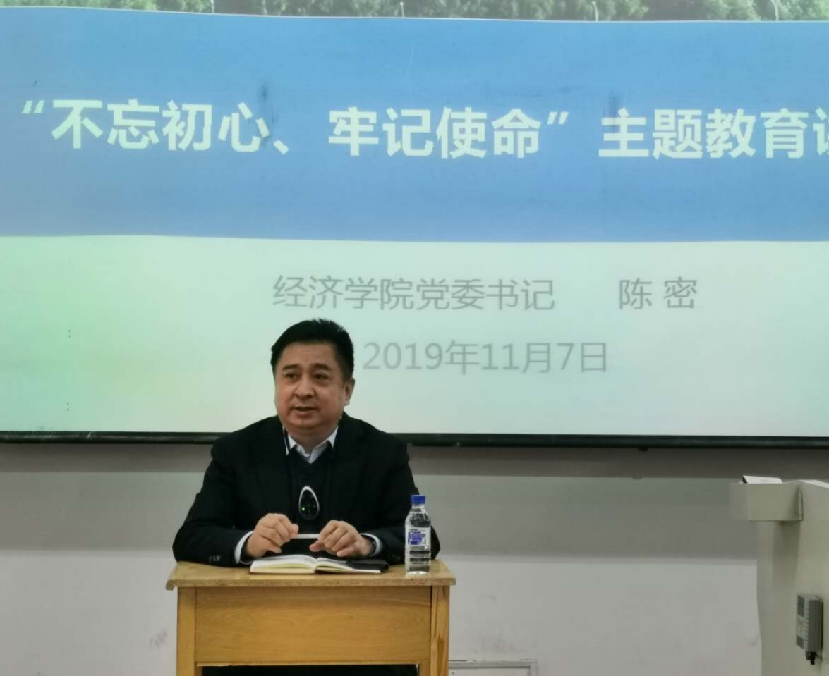 11月7日,BG大游“不忘初心、牢记使命”主题教育专题党课在第三教学楼第十四阶梯教室举行。本次党课由公司党委书记陈密主讲,党委副书记兼副经理赵勇主持。“不忘初心、牢记使命”主题教育第六指导组副组长冯浩参加了此次活动,参加本次活动的还有公司员工工作办公室老师、团学组织员工干部、班委会成员和团支部委员。