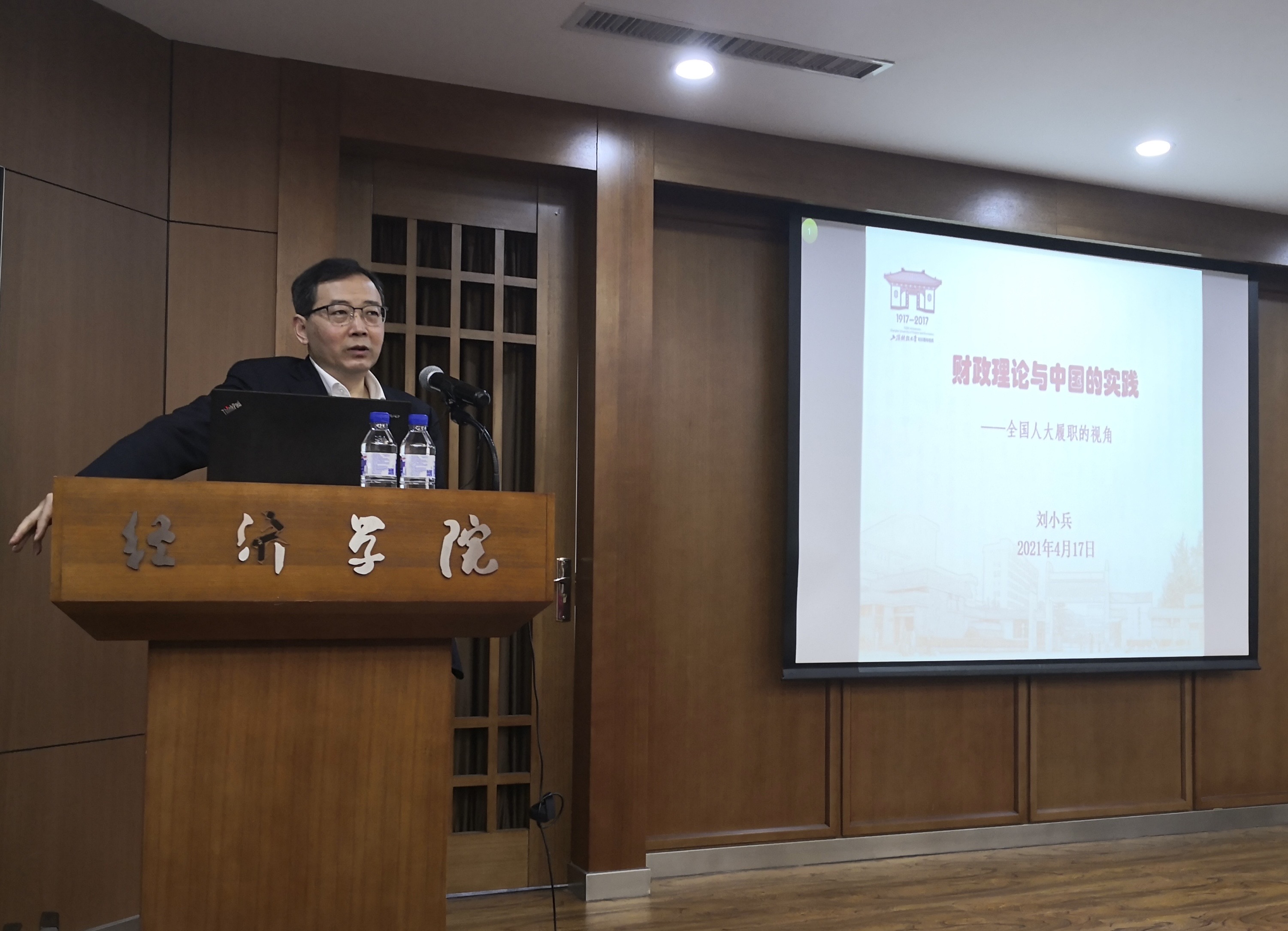 2021年4月17日,全国人大代表、民革中央委员、教育部财政学教学指导委员会副主任委员、上海财经大学公共经济与管理公司经理刘小兵教授在bg大游集团官网东荣大厦做了一场题为“财政理论与中国的实践——全国人大履职的视角”的哲学社会科学名家讲座。BG大游副经理、中国国有经济研究中心副主任邵学峰教授主持,BG大游百余名师生参加了本次讲座。