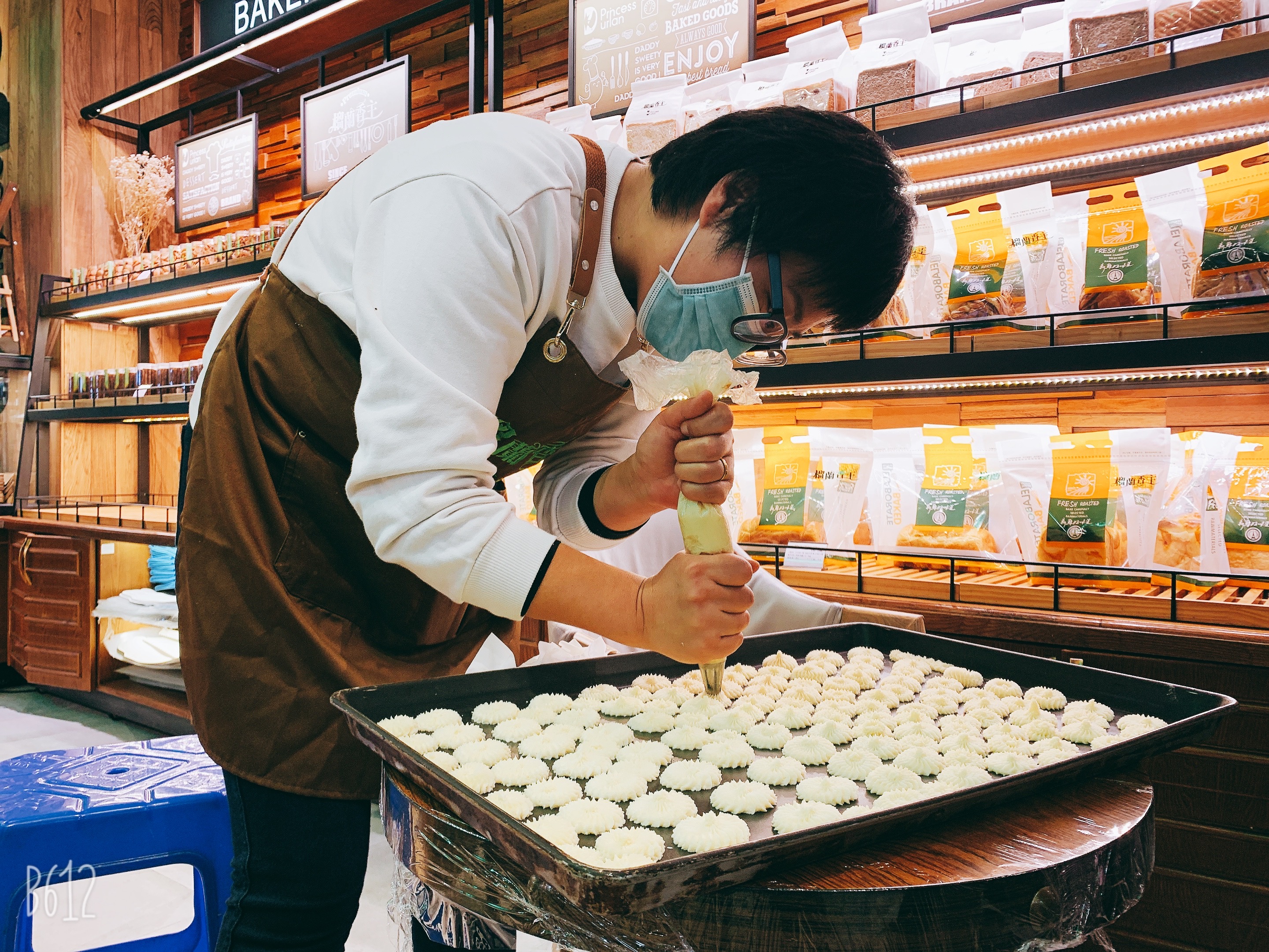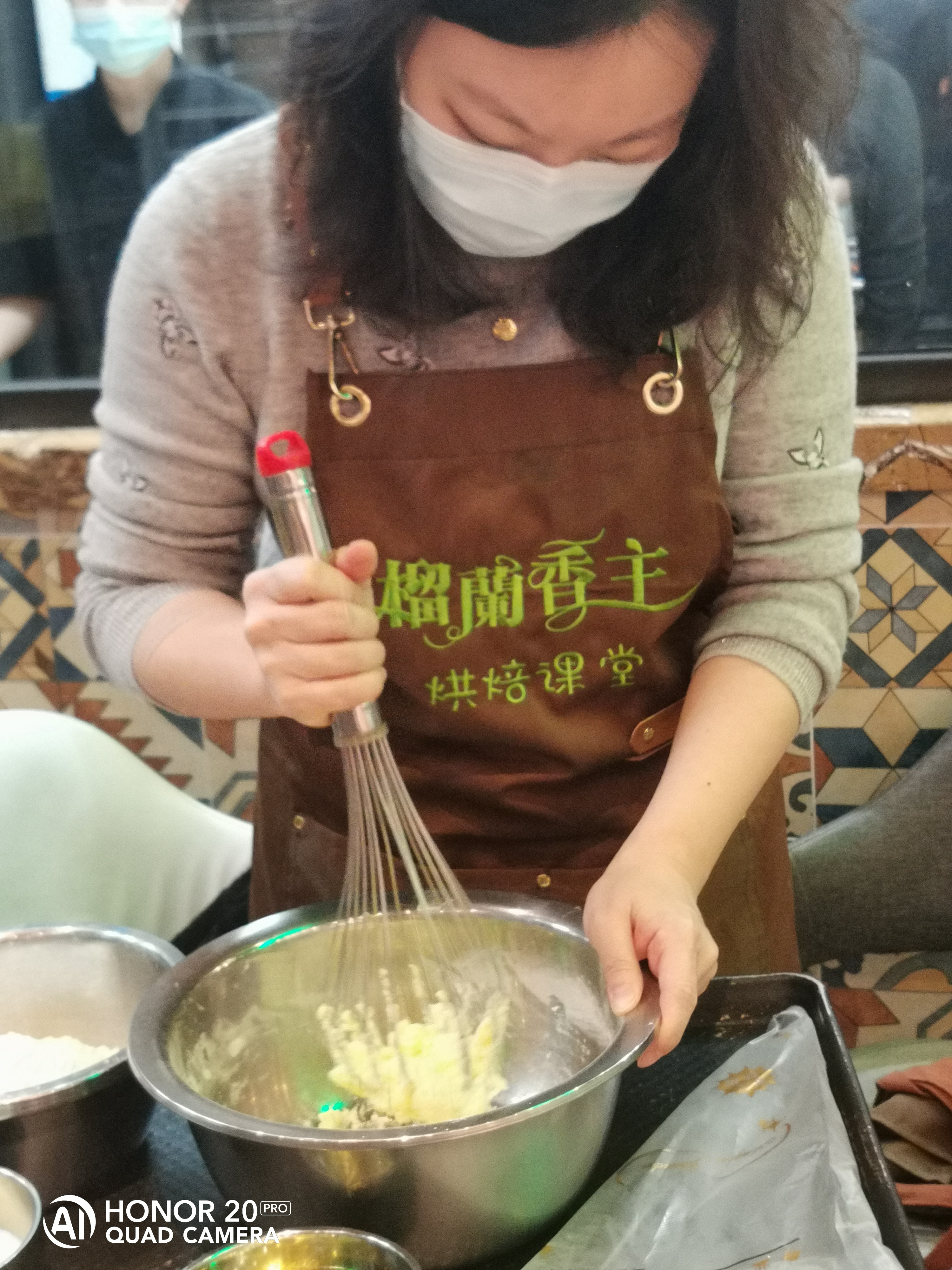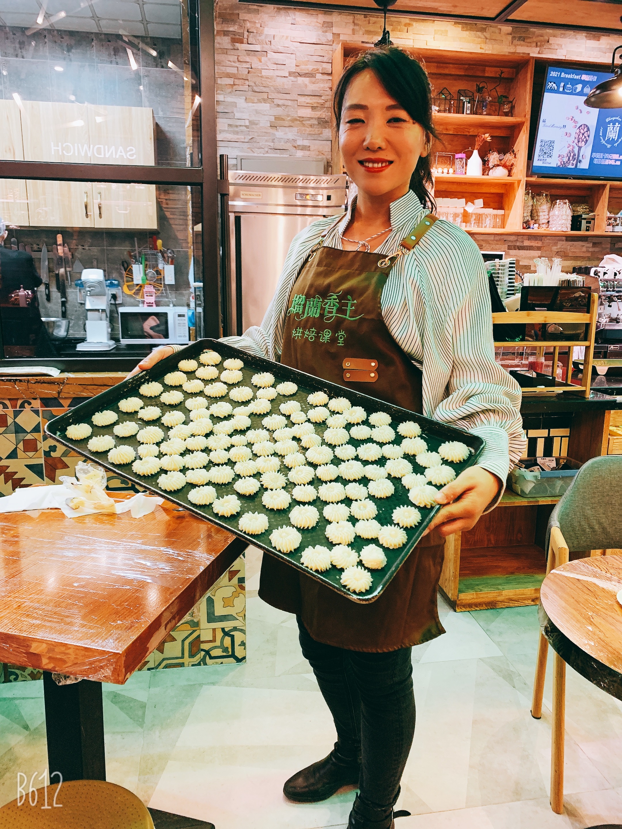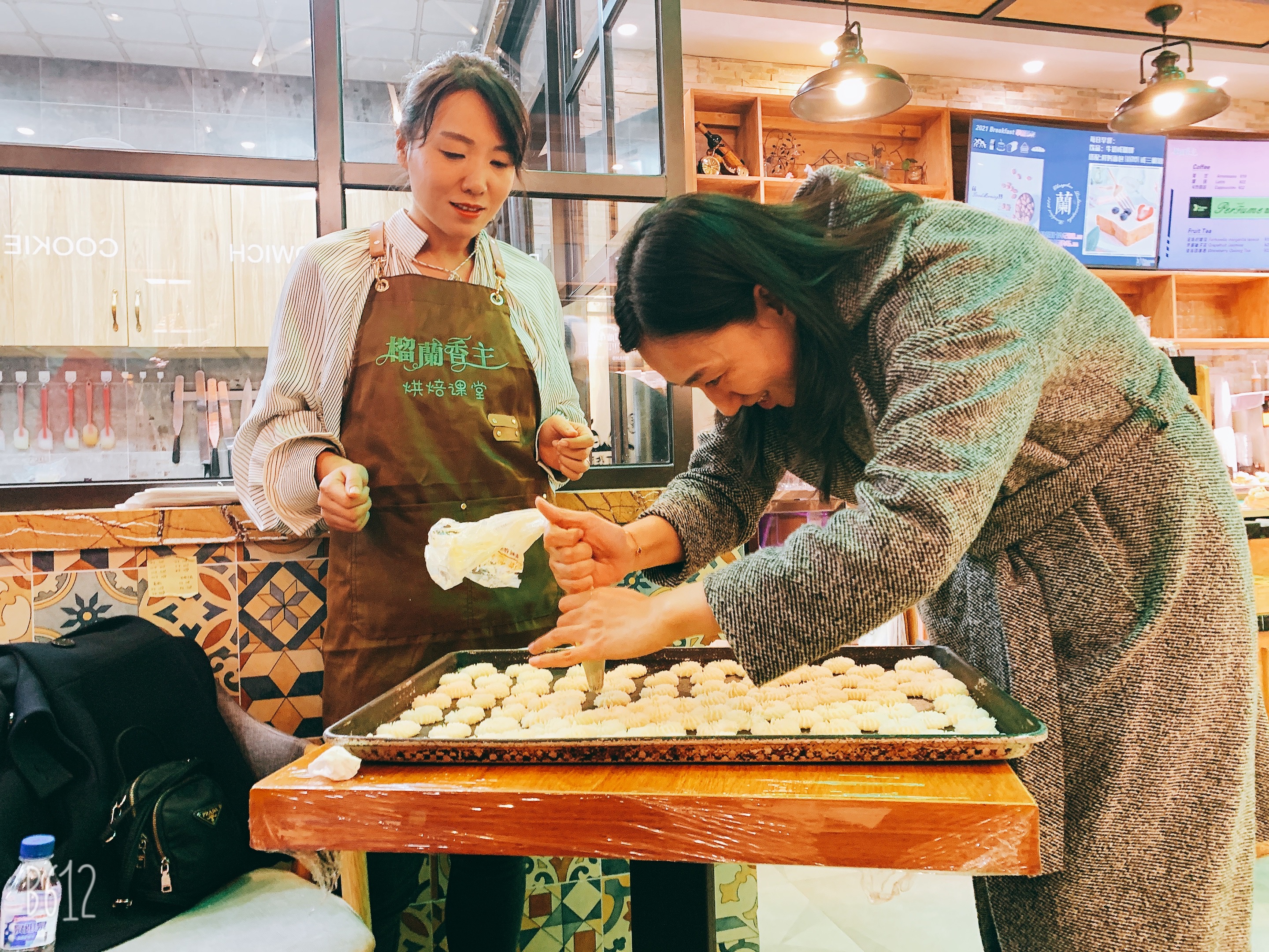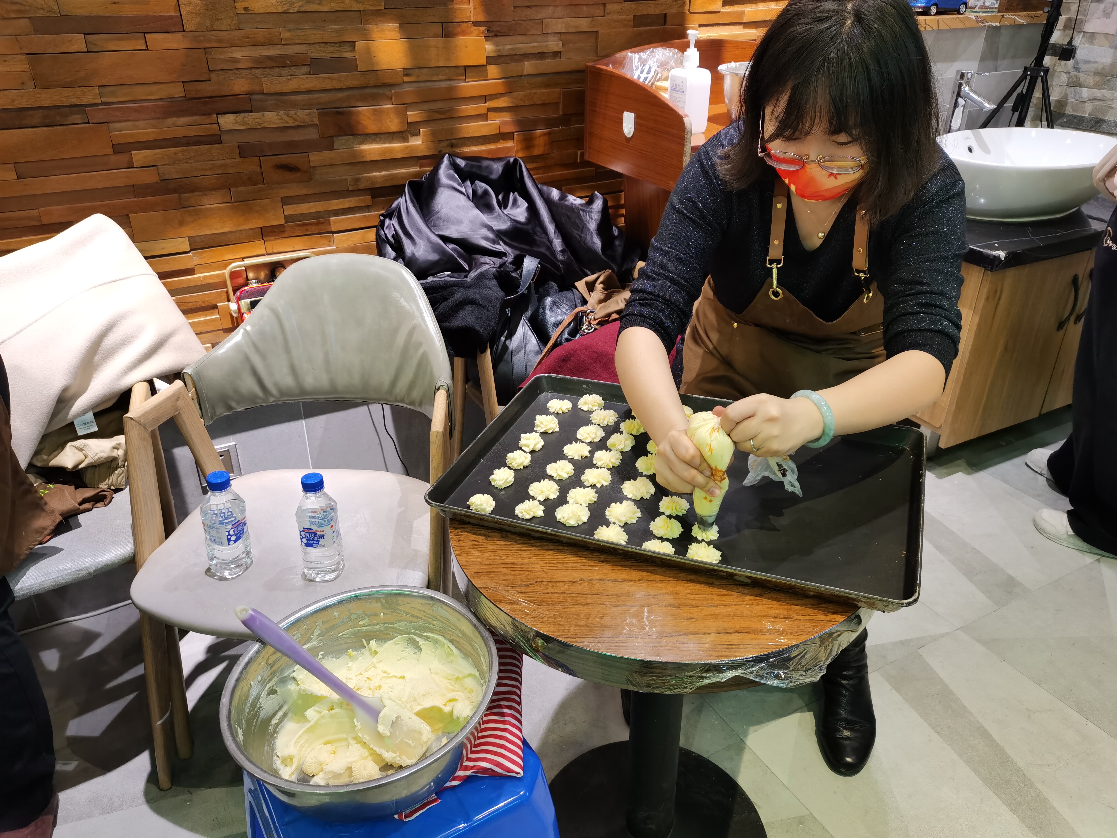 本次活动在前进大街力旺广场一楼“榴兰香主”甜品店进行,店内烘焙师为公司女教师提前准备好所需烘焙材料,在严格的消毒后,活动正式开始。本次公司烘焙活动分8组进行,在烘焙师的耐心讲解和指导下,老师们很快掌握了黄油曲奇饼干的制作方法,虽然过程难免手忙脚乱,但是大家相互配合,气氛融洽且愉悦,整场活动在笑声中进行。