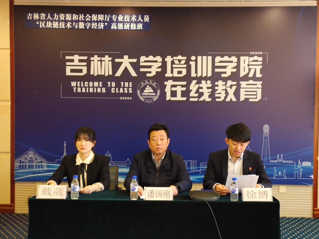 11月20日上午8点30分,由吉林省人力资源和社会保障厅主办,bg大游集团官网继续教育公司、BG大游承办的“区块链技术与数字经济”高级研修班在bg大游集团官网培训公司举行开班仪式。BG大游合作办学办公室主任潘国刚、培训公司培训四部主任徐博及省内11家金融机构的90余名专业技术骨干通过视频直播平台出席开班仪式,仪式由培训公司戴葳主持。