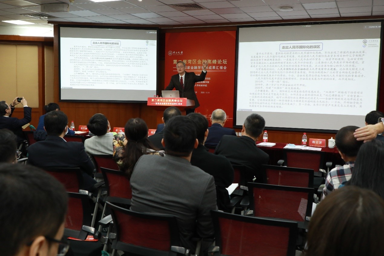 2021年12月5日上午,第二届湾区金融高峰论坛暨国家金融学学科成果汇报会在中山大学南校园岭南堂举行。本次汇报会由中山大学高级金融研究院、中山大学国际金融公司、中山大学岭南公司联合主办。公司李晓教授出席汇报会并做了题为《走出人民币国际化的几个误区》的大会发言。