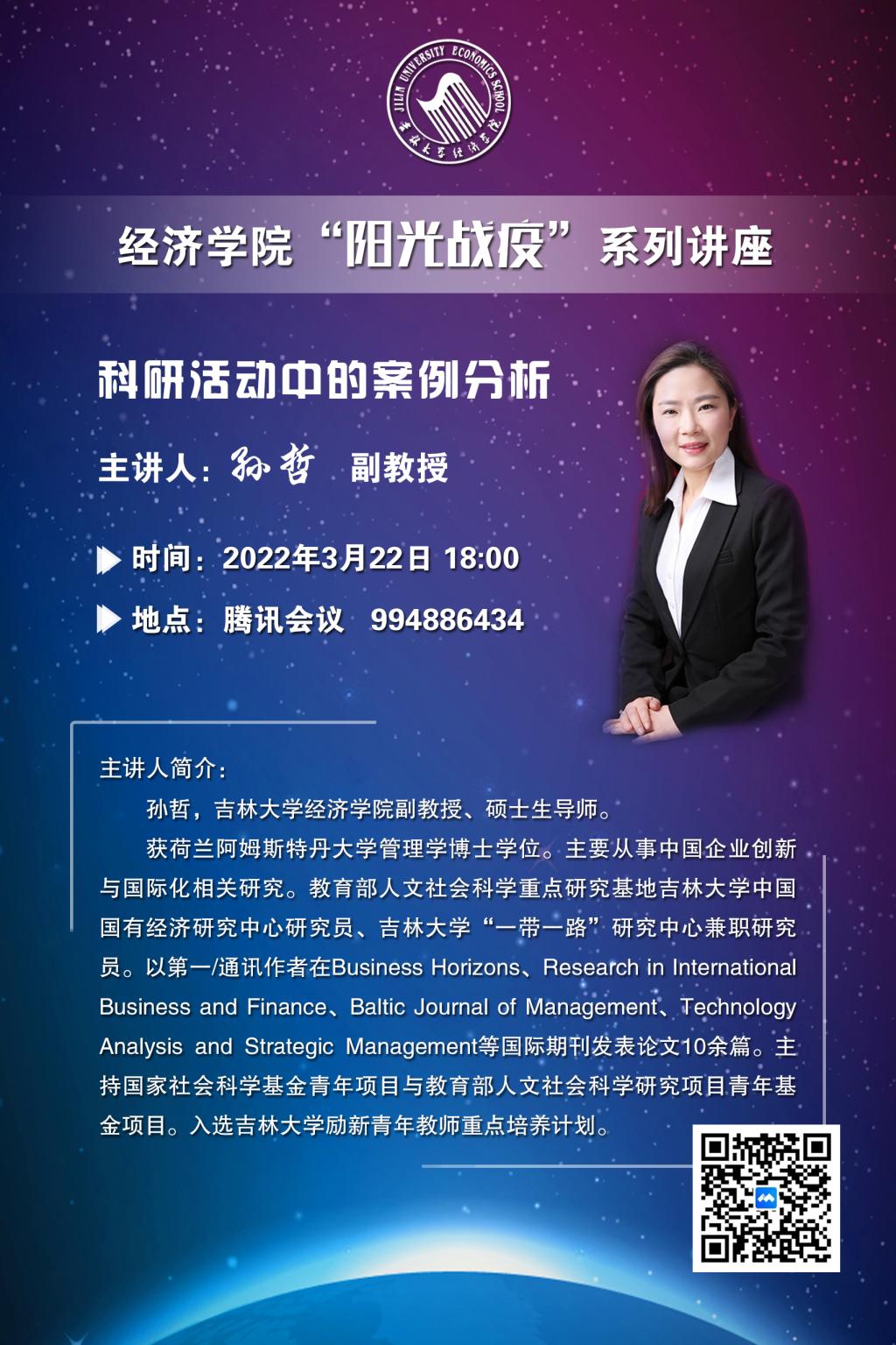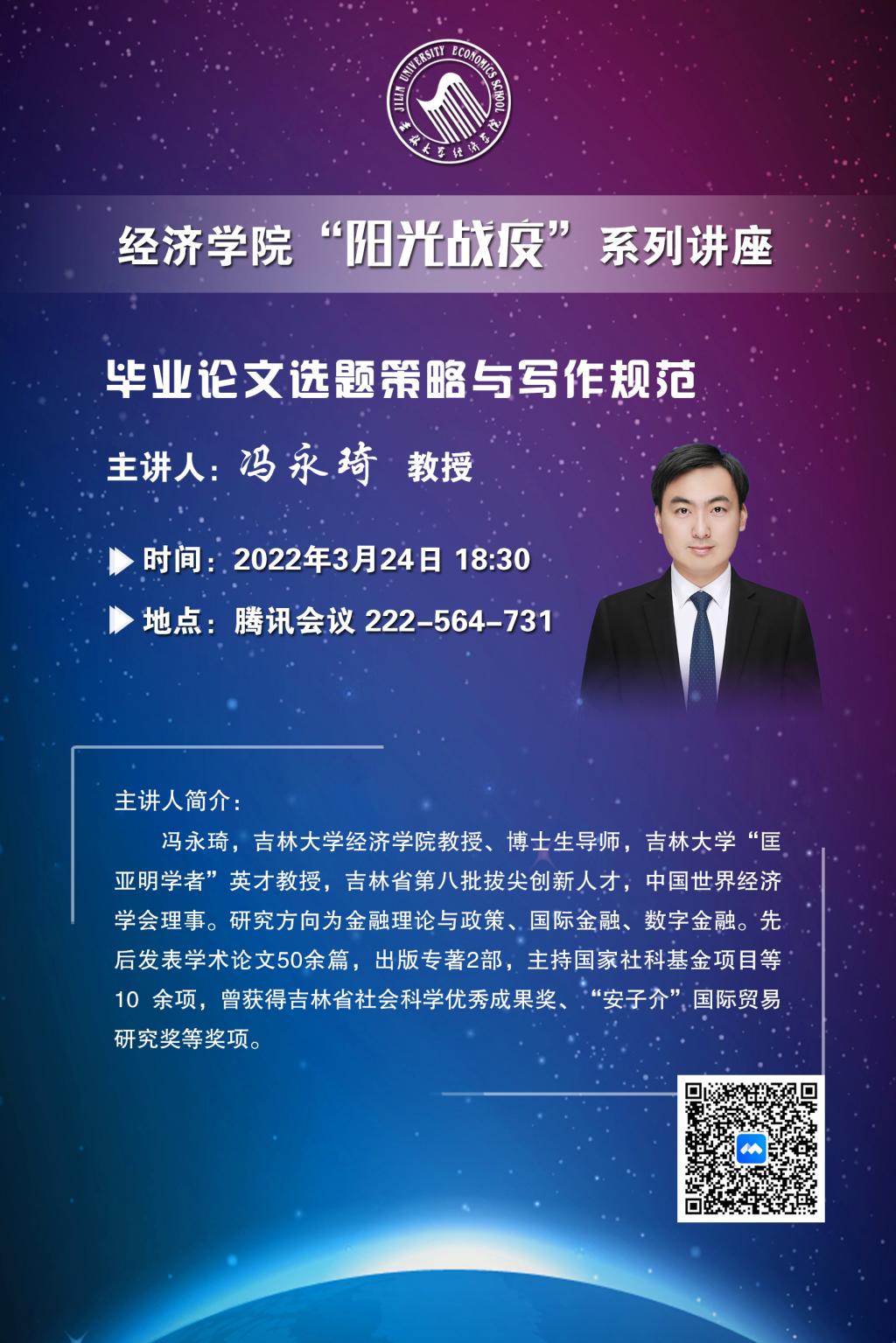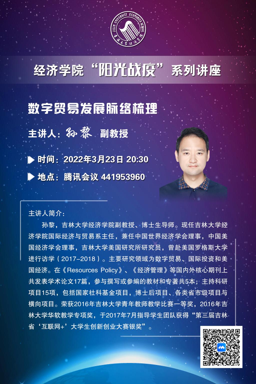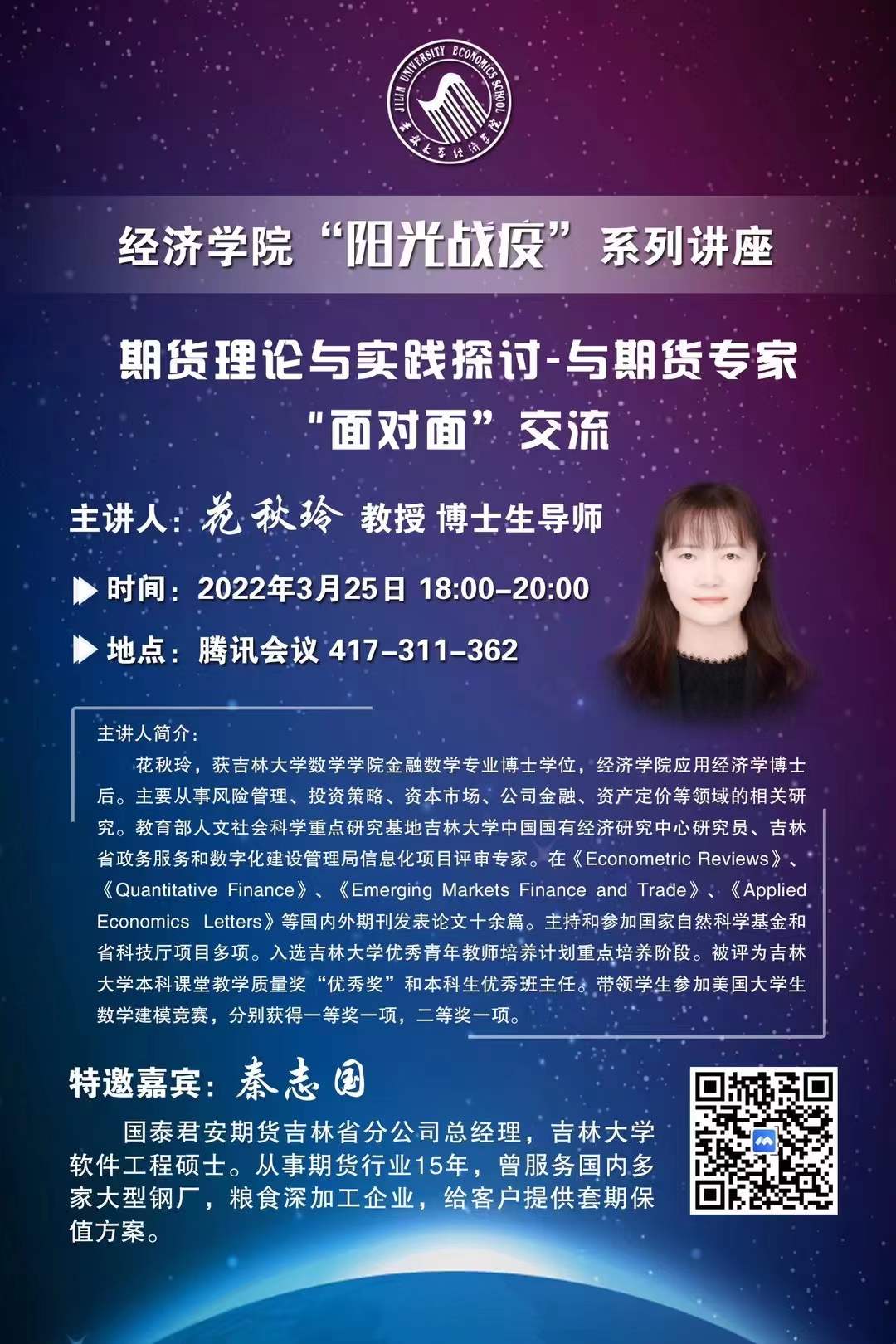 2022年3月22日,经济学系孙哲副教授首先作了题为“科研活动中的案例分析”的报告,为同学们介绍了案例分析方法在科研活动中的作用与意义以及如何做好案例分析;3月23日,孙黎副教授作了题为“数字贸易发展脉络梳理”的报告,系统回顾了数字贸易产生和发展的背景、意义与路径,介绍了中国数字贸易的进展以及面临的问题;3月24日,冯永琦教授作了题为“毕业论文选题策略与写作规范”的报告,详细阐述了毕业论文选题的注意事项和主要方法,对同学们的毕业论文写作进行了指导;3月25日,花秋玲教授作了题为“期货理论与实践探讨”的报告,并邀请国泰君安期货吉林省分公司秦志国总经理,就期货理论与实践进展与同学们进行了互动交流;3月26日,何彬副教授作了题为“浅谈现代计量经济学的可信性革命与因果识别策略”的报告,分享了计量经济学发展的最新进展,尤其是因果识别的理念、方法与策略。