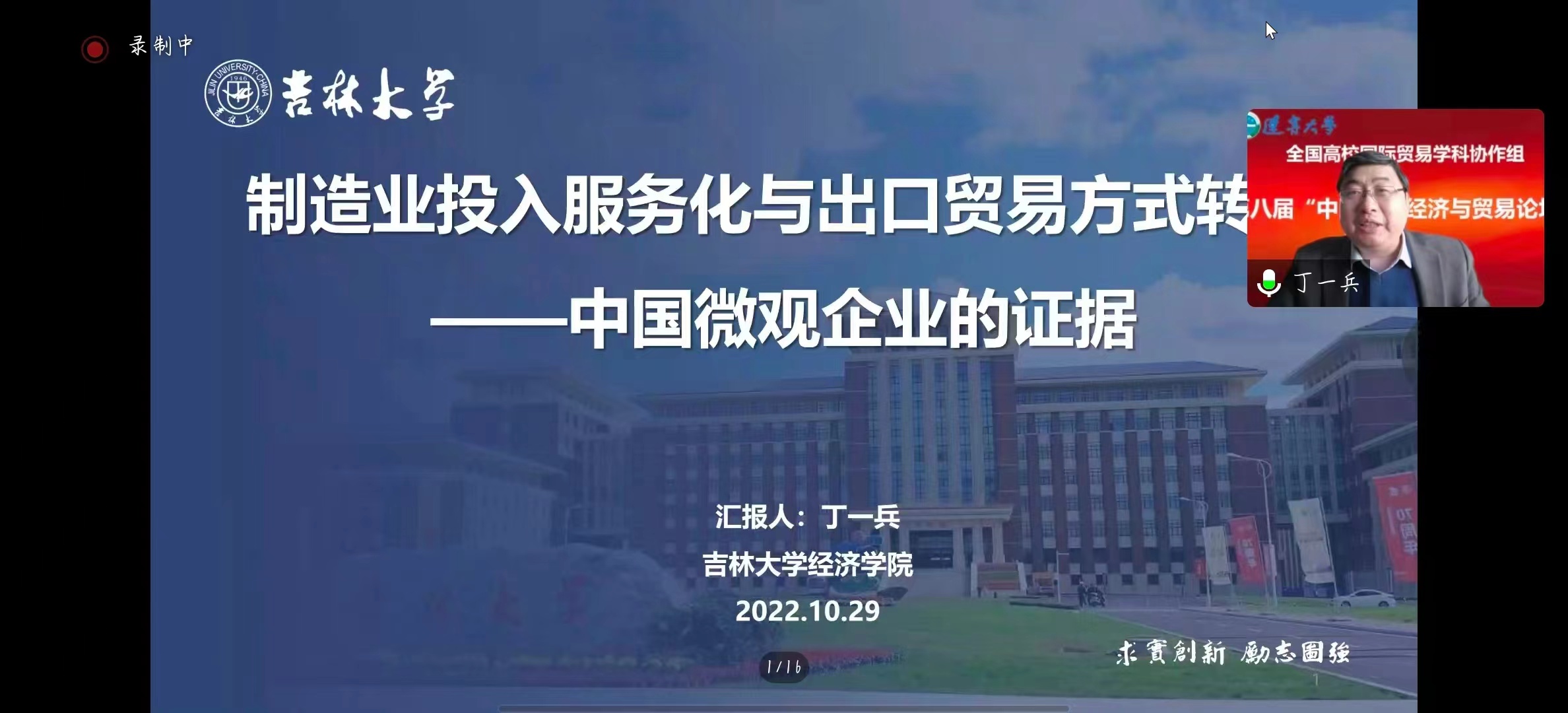 2022年10月29日,由全国高校国际贸易学科协作组主办的第八届“中国服务经济与贸易论坛”线上举办。中国世界经济学会副会长、BG大游经理丁一兵教授受邀作了题为“制造业投入服务化与出口贸易方式转型——中国微观企业的证据”的主旨演讲。