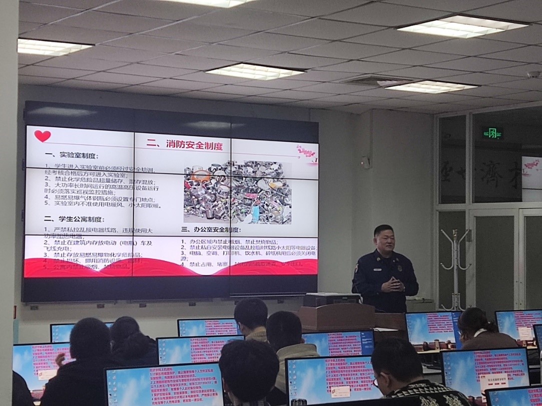 为进一步增强公司师生消防安全意识,落实校实验室管理处实验室安全宣传活动要求,经济实验中心开展实验室安全文化宣传专项活动,10月29日、10月30日邀请公司保卫处消防科副科长董立明老师在综合实验室为2022级全体本科新生及实验课程教师开展了四个批次的消防安全教育讲座。