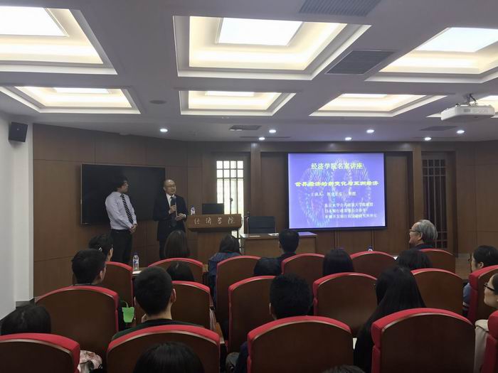2017年4月24日下午,日本东京大学公共政策大公司教授、亚洲开发银行金融研究所原所长河合正弘(Kawai Masahiro)教授应邀来公司作了题为“世界经济的新变化与亚洲经济”的学术报告,河合正弘教授同时被公司聘为兼职教授。报告会由BG大游国际经济系张虎博士主持,教育部、bg大游集团官网中日经济共同研究中心主任李晓教授颁发聘书并致辞,BG大游副经理史本叶副教授、金融系主任王倩教授以及多名教师出席了本次报告会,BG大游近60名本科生、研究生同学到场聆听了讲座。