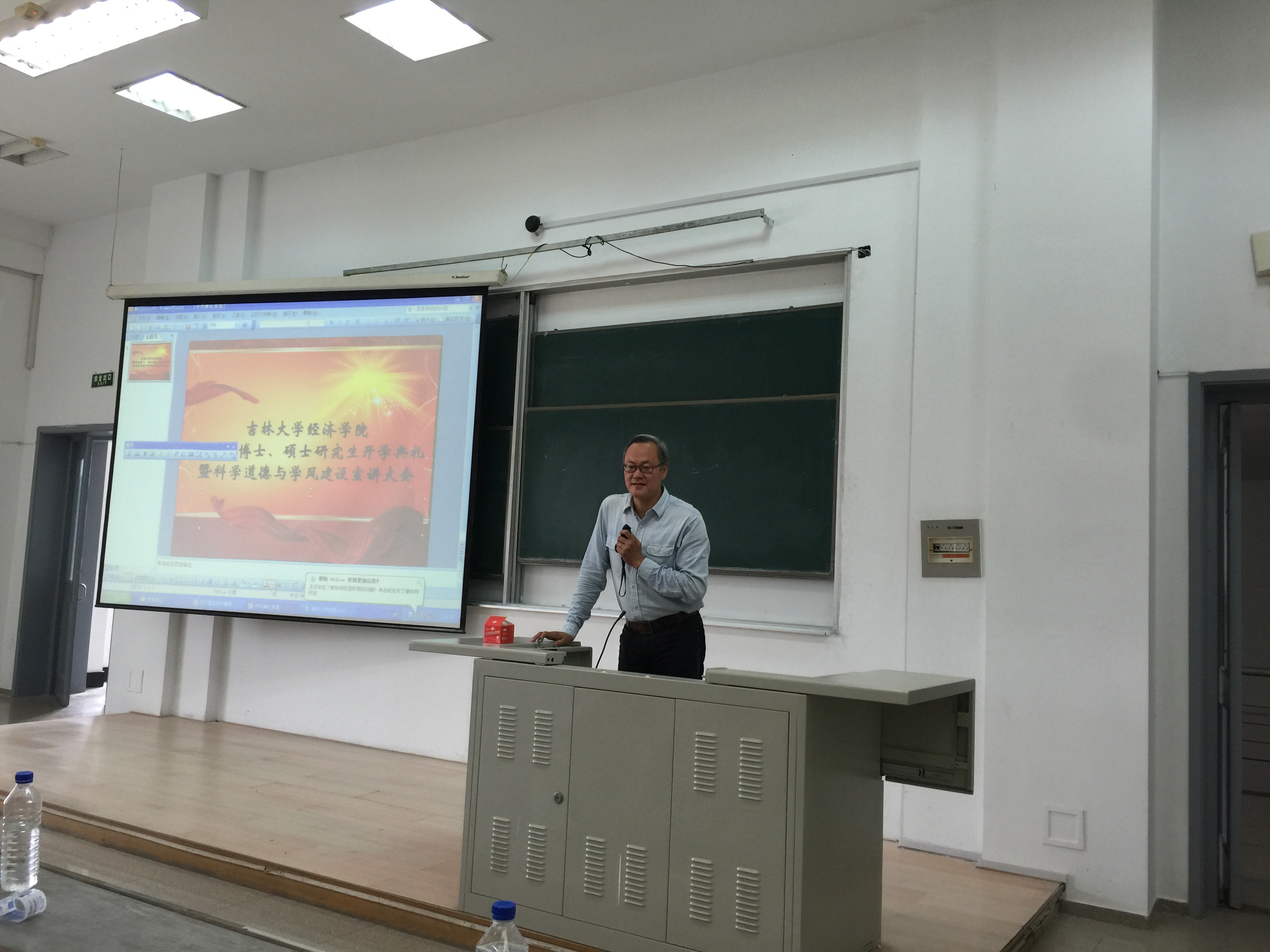 首先,与会人员全体肃立奏唱国歌。经济系副主任赵新宇教授作为教师代表,就如何开启研究生生活发表讲话。赵新宇教授指出,研究生阶段与本科生的区别,主要在于学习的自主性,想要在学术方面有所突破,必须要转变学习方法和态度,主动探索发现问题,并积极与导师沟通。