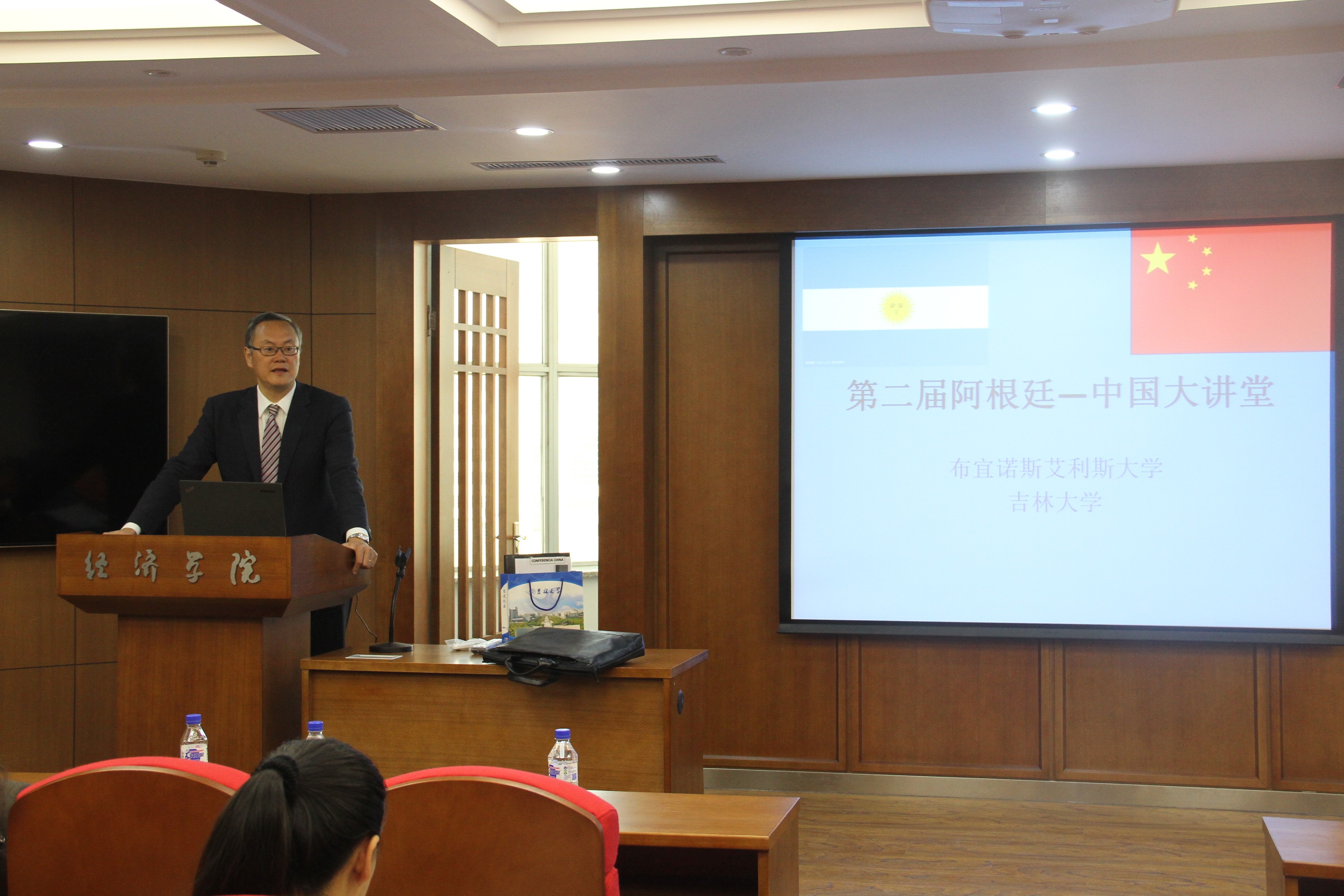 在2015年10月,公司BG大游副经理李晓教授及国际经济与贸易系主任丁一兵教授应邀访问了阿根廷布宜诺斯艾利斯大学,就bg大游集团官网——布宜诺斯艾利斯大学“中国—阿根廷大讲堂”的定期举办、双方教师交流与合作等问题达成了初步共识,并在布大“中国大讲堂”做主题演讲。