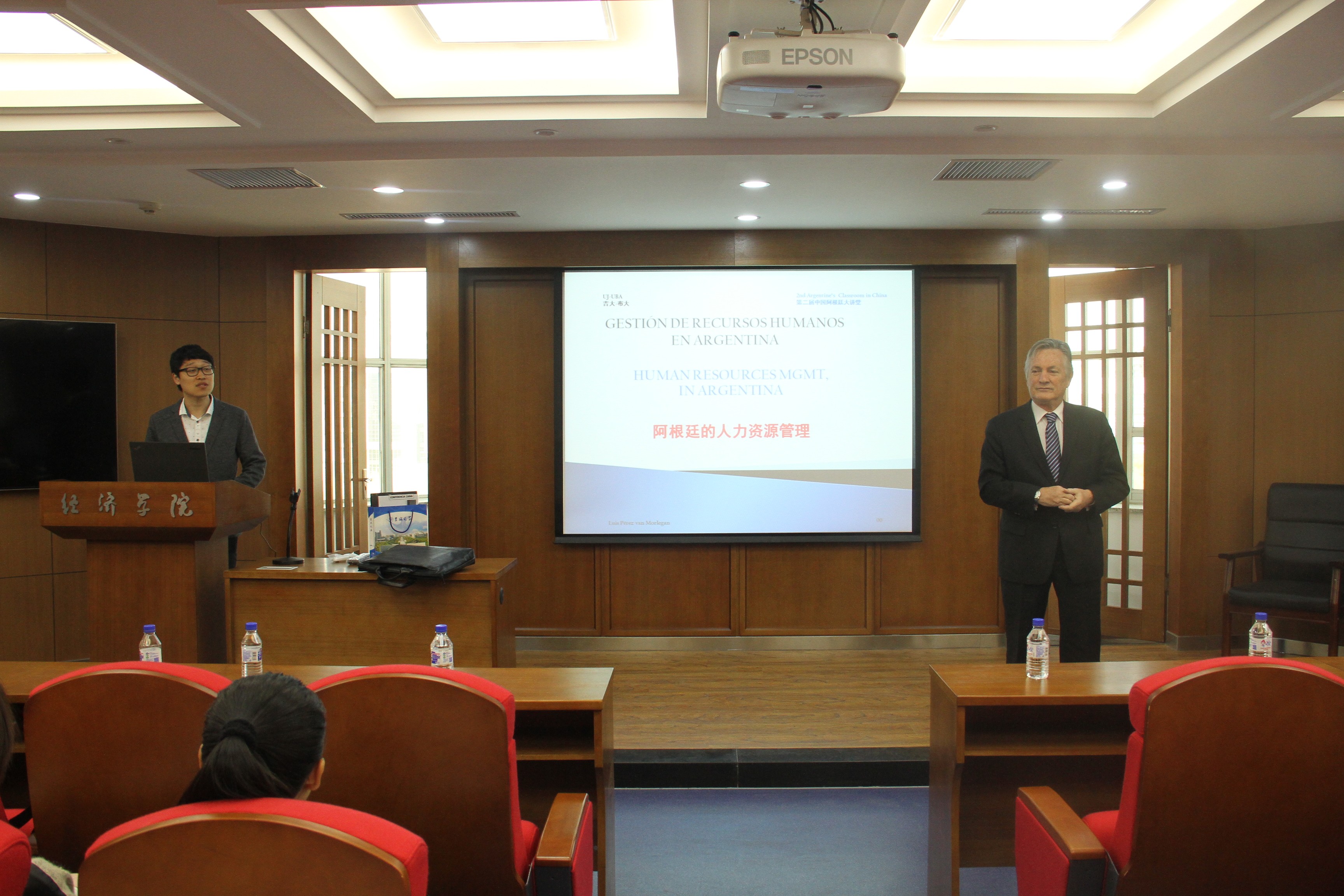 本次阿根廷国际大讲堂由两场学术讲座构成。5月5日上午9:00,布宜诺斯艾利斯大学国际事务处长、人力资源管理硕士项目负责人、布宜诺斯艾利斯大学孔子公司阿方经理Luis Van教授做了一场题为“阿根廷的人力资源管理”的学术讲座。