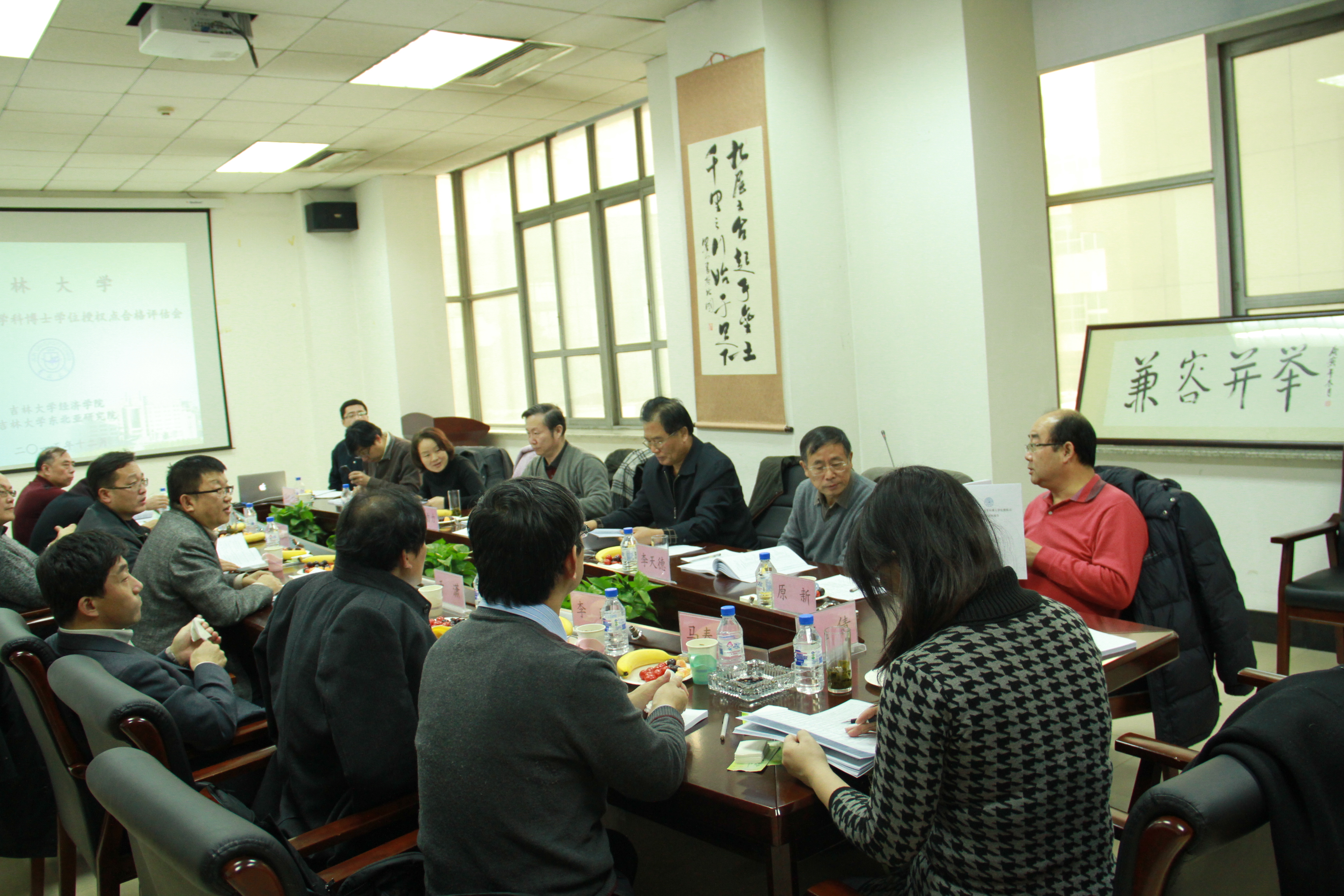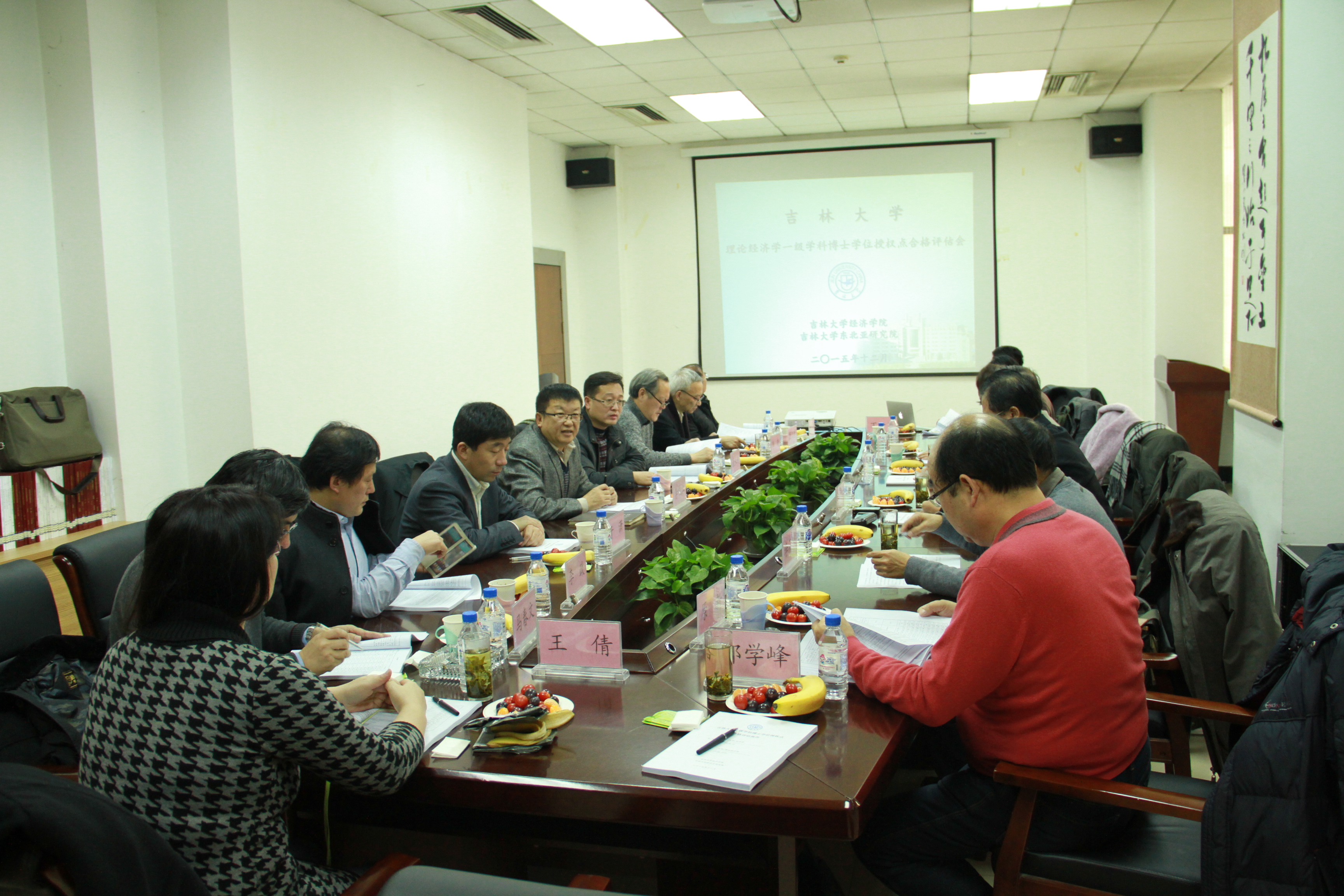 2015年12月12日下午,bg大游集团官网理论经济学一级学科博士学位授权点合格评估会在东荣大厦A114会议室召开。评估专家组组长辽宁大学程伟教授,成员四川大学李天德教授,南开大学何自力教授、原新教授,东北师范大学李秀敏教授,以及学位办主任康永刚,BG大游经理李俊江教授、副经理李晓教授,东北亚研究院经理于潇教授等专家出席了会议。