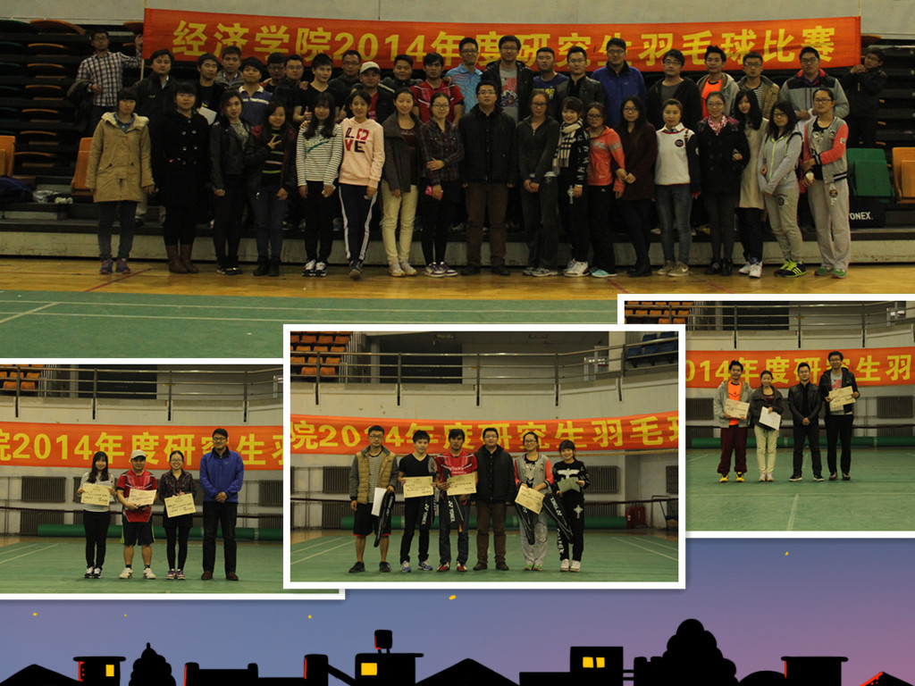 同学们报名踊跃,自发组成志愿者工作人员。经过抽签分组,羽毛球比赛正式拉开帷幕。比赛过程中大家认真对待比赛,表现了作为参赛选手胜不骄败不馁的决心,现场的气氛逐渐进入高潮。初赛之后,经过两轮更加精彩的淘汰赛,终于迎来了总冠军的争夺赛。男、女子组冠军的争夺赛刚开始,选手们就表现出不俗的实力,精彩的对抗赢得在场观众的阵阵掌声。经过一番激烈的较量,男子、女子组冠军分别是曾伍军和王金坪同学,职工同学万荣也荣获一等奖。激烈的比赛结束后,由高杉老师和两位研究生会副主席佟训舟、金新同学分别向获奖选手颁发荣誉证书及奖品。最后,全体参赛人员和工作人员合影留念,2014年度研究生羽毛球赛圆满落下帷幕。