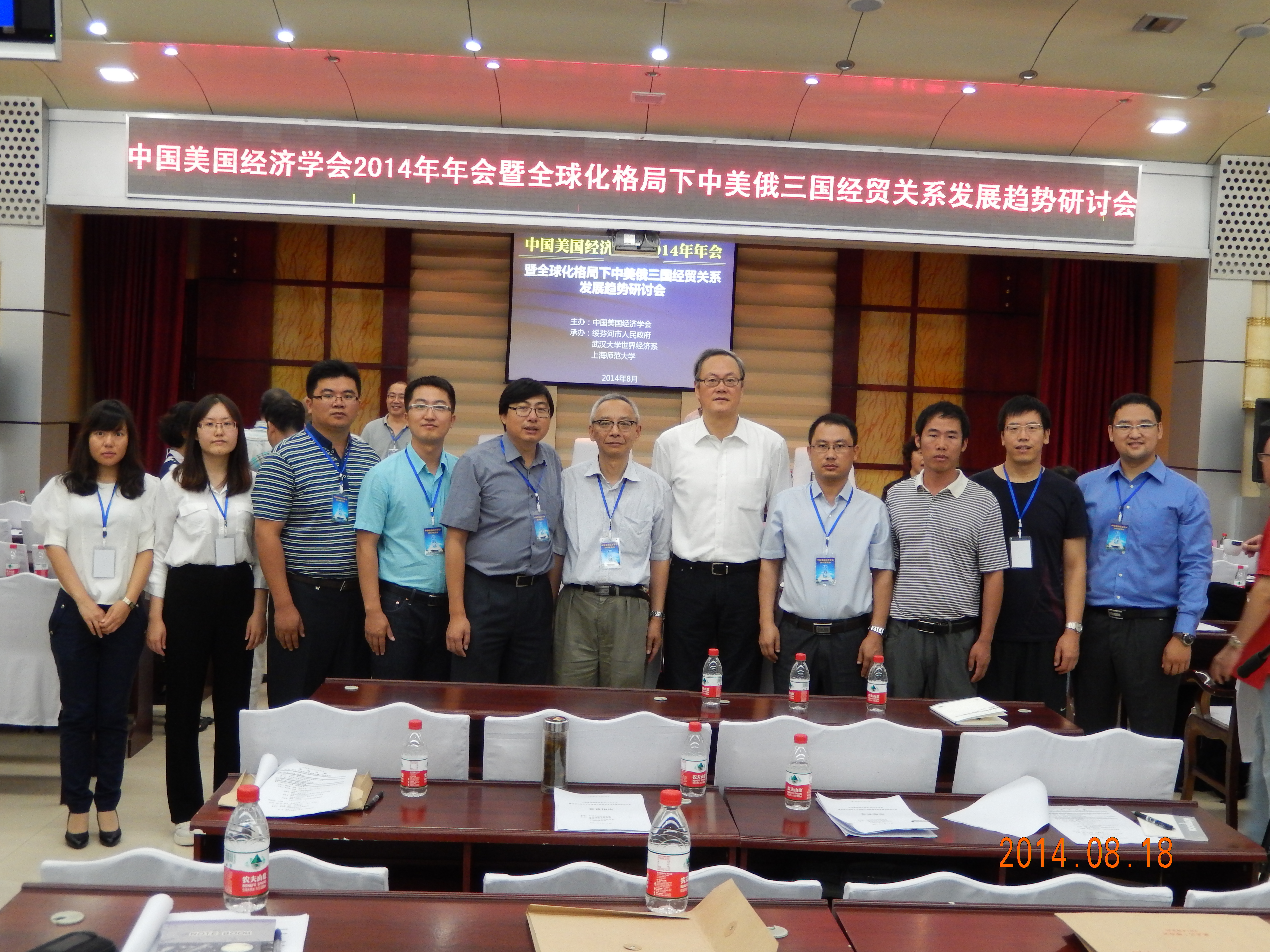 2014年8月18日,“中国美国经济学会2014年年会暨全球化格局下中美俄三国经贸关系发展趋势研讨会”在黑龙江省绥芬河市召开。此次会议由中国美国经济学会主办,由武汉大学、上海师范大学和绥芬河市人民政府共同承办。bg大游集团官网美国研究所共有9名教师和2名博士生的论文入选此次年会,bg大游集团官网美国研究所副所长项卫星教授带队参加了本次会议。