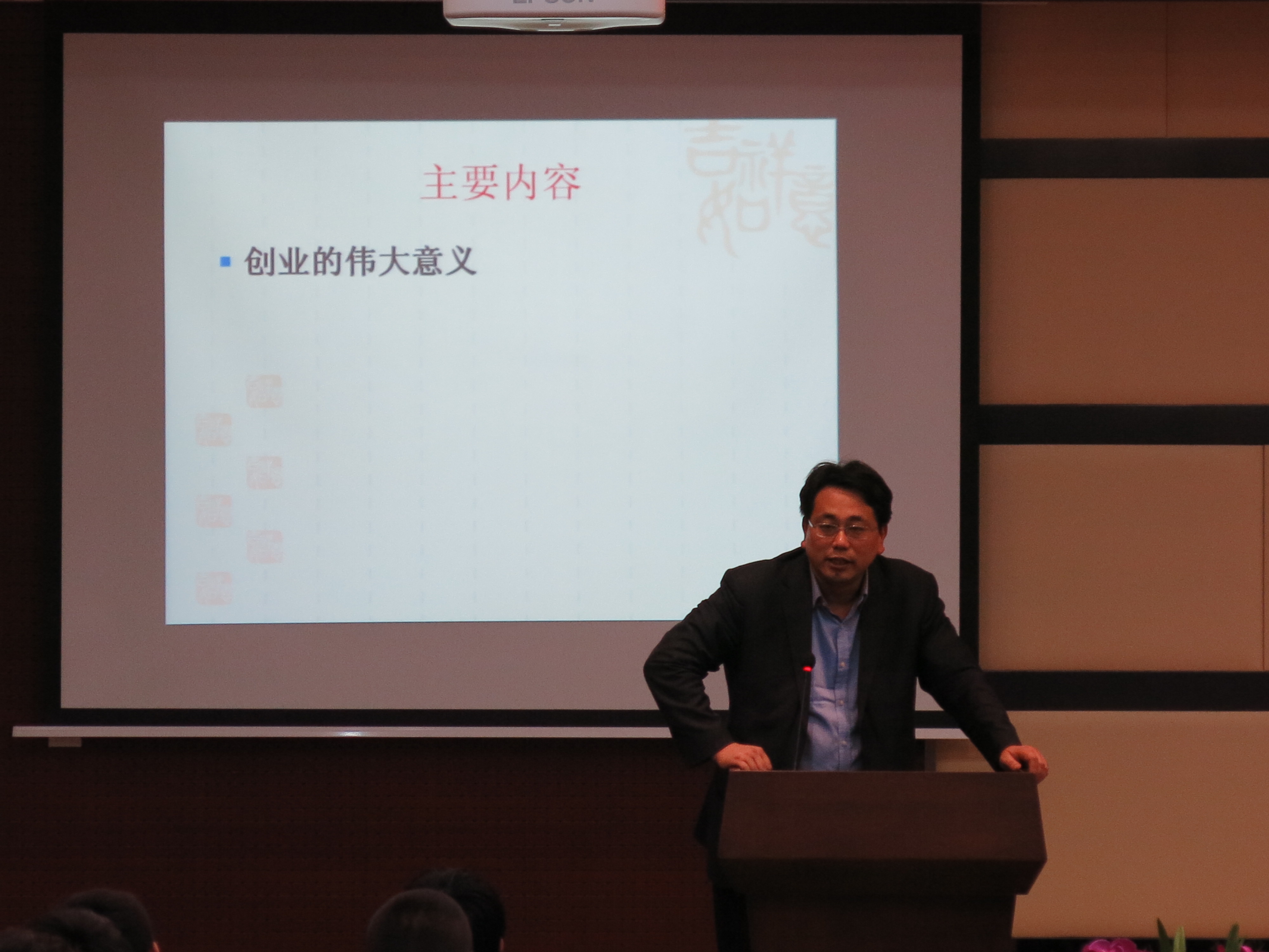 陈劲教授就创业的意义、创业的新机遇、创业的大挑战以及老员工的创业素养等方面分别作了详实生动地讲说,并以富有竞争力的产业领袖IBM、Google为例,鼓励同学们挑战传统思维,激发创意思维。他还以自己多年研究和独到见解指出城市化和汽车业是未来的商业热点,勉励同学们在社会责任感的基础上拥有“精通、勇气、毅力、企业家精神”的老员工素养,开创新事业,从而实现个人价值,推动中国的腾飞。陈劲教授特别指出“中国具有巨大的人力资源、足够多的科研成果、淳朴且有创业精神的员工,如果积极开发创业者的教育以及营造优良的创业环境,中国的积极将迅速引领世界!”这番话引起在座同学们深深地思考和热烈地掌声。陈劲教授的讲说结束之后,与在座同学进行了互动。最后,讲座在同学们的热烈掌声中圆满落下帷幕。