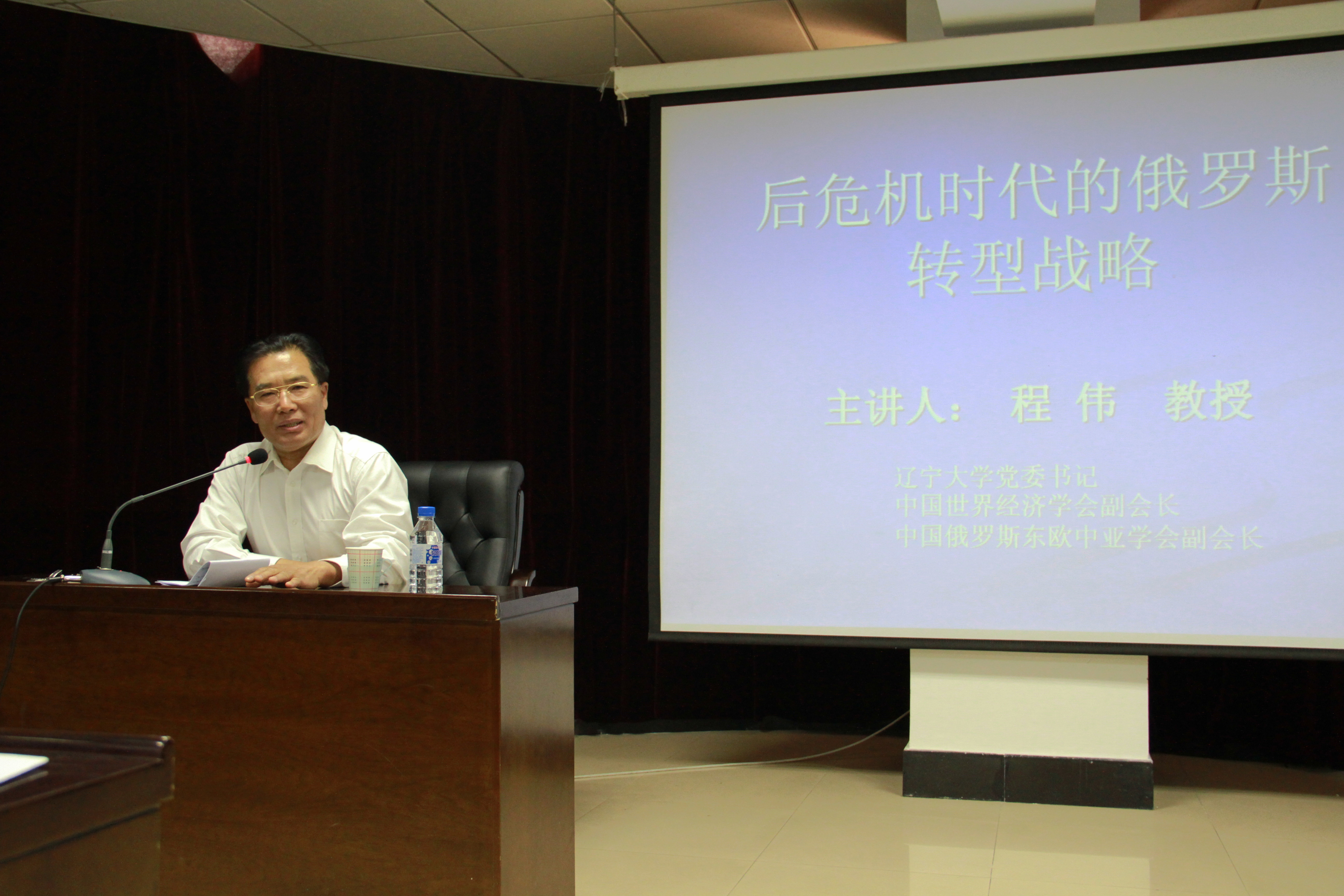 2013年5月23日下午,辽宁大学党委书记程伟教授在东荣大厦八楼BG大游会议室,作了一场题为“后危机时代的俄罗斯转型战略”的学术报告。此次讲座由BG大游、社会科学处主办,公司副经理李晓教授主持了报告会。