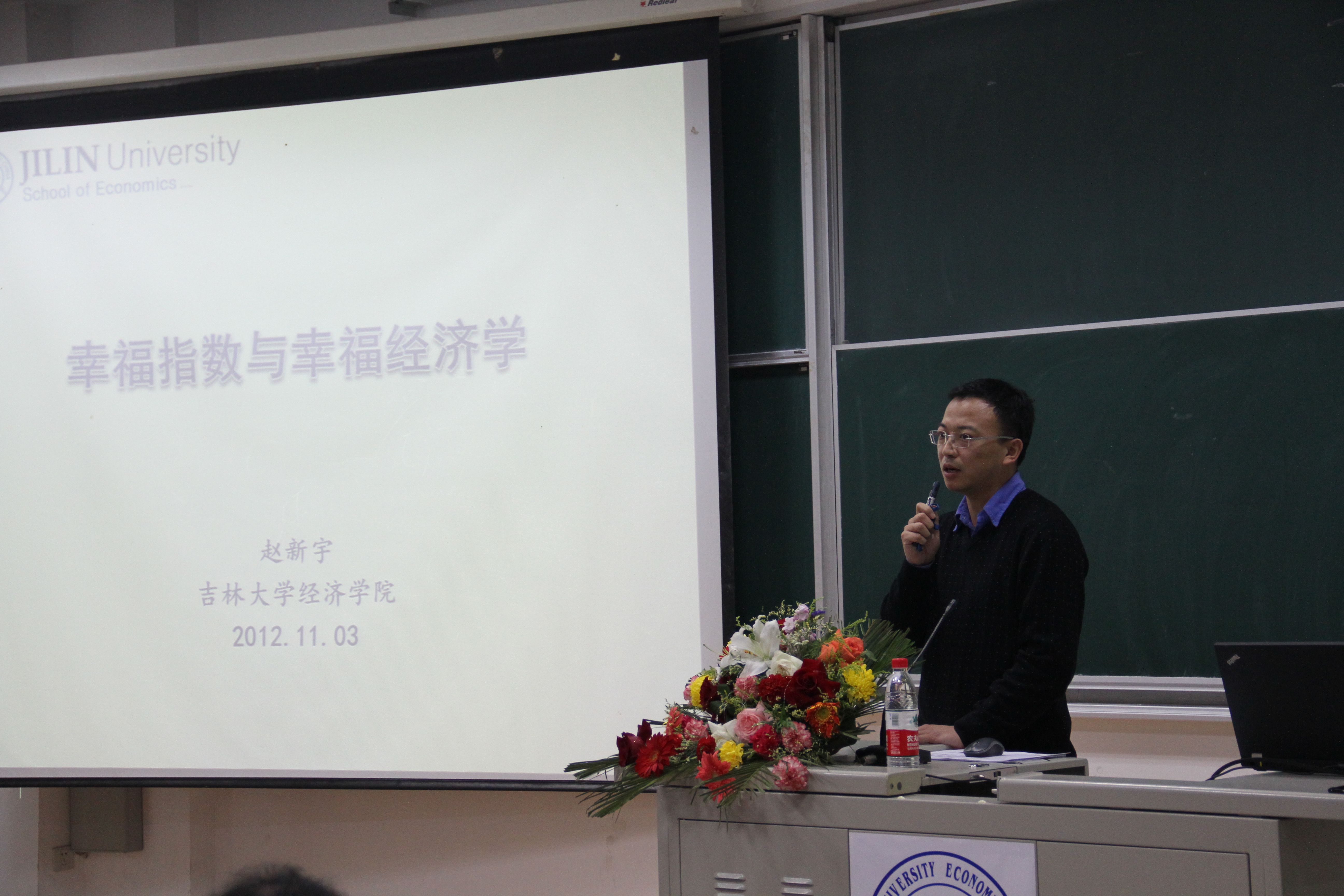 在首场主题报告会上,从澳大利亚莫纳什(Monash)大学访问归来、期间师从著名华人经济学家黄有光教授的赵新宇老师为大家带来了题为“幸福指数与幸福经济学”的学术讲座。赵新宇老师以“你幸福吗”入题,回顾了哲学家、社会学家等不同学科对幸福的定义,进而从经济学角度给出了自己的定义,构建了主观与客观相结合的国民幸福指数。接下来,赵老师还详细介绍了自己团队刚刚做完的吉林省公众幸福感调查报告结果及有关情况,使同学们对幸福经济学及其应用有了更多的直观了解。报告结束后,同学们针对幸福指数构建方法与幸福经济学的一些现实问题积极提问,得到了赵老师耐心而风趣的解答。最后,李政教授对本场报告做了简要总结和点评。