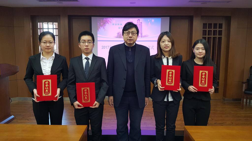 2017年12月29日,BG大游2017年“九零国经奖学金”颁奖仪式在bg大游集团官网中心校区东荣大厦804会议室举行。出席本次颁奖仪式的嘉宾有BG大游副经理丁一兵教授、国经系主任王达教授、员工工作办公室主任田仲金老师以及4名获奖员工。