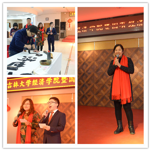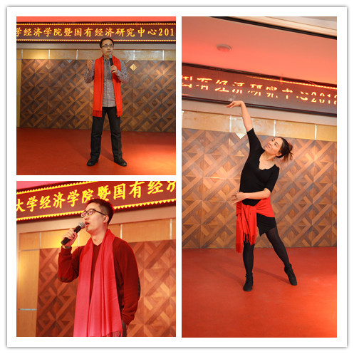热 热烈的掌声和祝福声中,2018年新年联欢会正式拉开帷幕。联欢会由廖红伟、张磊、刘柏岩三位老师主持。公司各系、国有经济研究中心及行政管理团队都表演了精彩纷呈的节目,有范立东老师演唱的《等待》、朴卿华老师演唱的《桔梗谣》、王达老师演唱的《珍惜》,行政团队的歌伴舞《最炫小苹果》、合唱《团结就是力量》,还有宋洋老师的舞蹈《芳华》、周渤老师的书法表演不仅展示了教职工的才华,更展现了经济学人的精神风貌。张继业老师演唱的《青藏高原》赢得了全场一浪高过一浪的掌声,李晓经理即兴演唱的一曲《往日时光》将联欢会推向高潮!晚会中穿插的游戏环节让大家在轻松一刻的同时,也感受到团队合作的力量。晚会在经济学系全体教师《明天会更好》的歌声中落下帷幕!最后,党委书记陈密发表新年寄语,祝愿全体教师新年快乐,阖家幸福!祝愿2018年BG大游团结一心、凝心聚力,在“双一流”建设的道路上奋发前进!