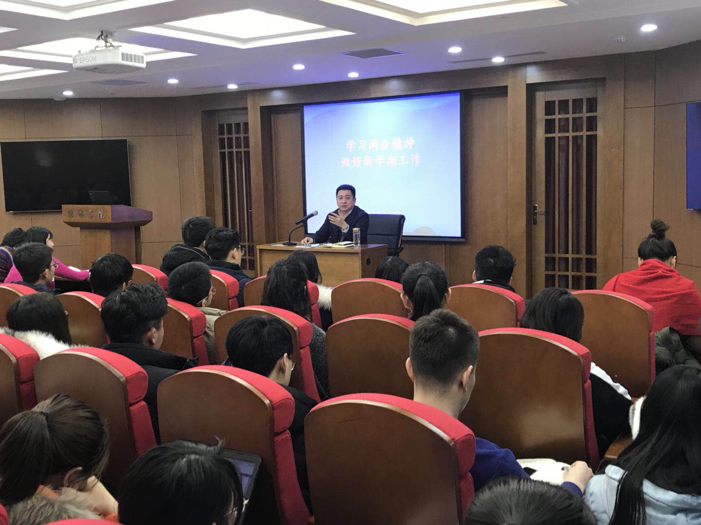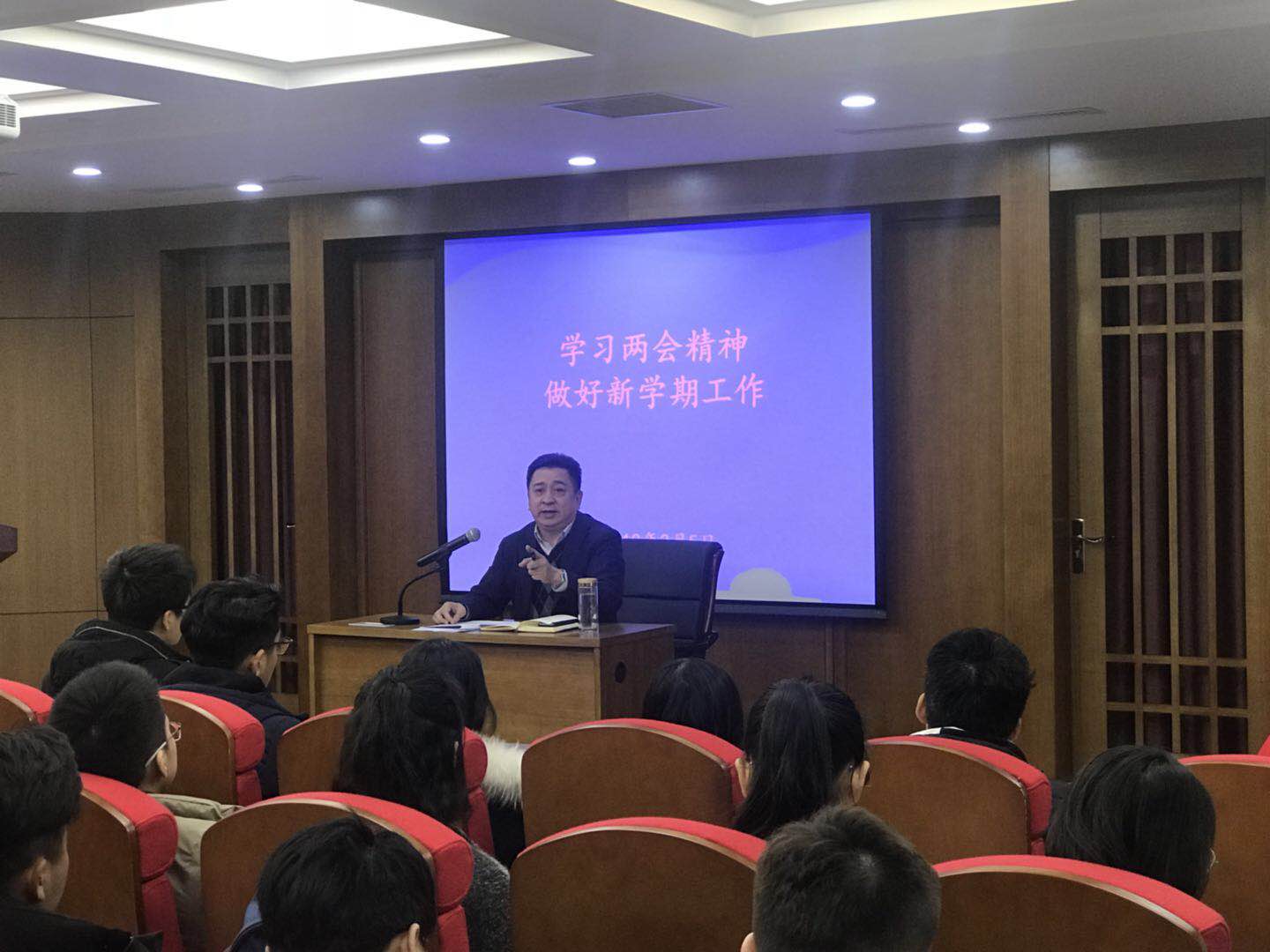 为深入学习领会“两会”精神,公司党委于2018年3月5日下午在东荣804会议室召开“学习两会精神、部署新学期工作”会议。公司各系主任、行政人员、本科生及研究生全体员工干部参加了会议,会议由党委书记陈密主持。