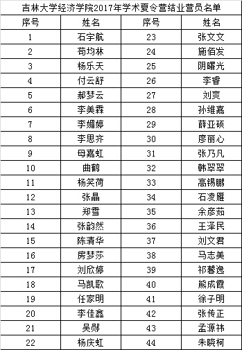 1、经公司夏令营工作小组评审,石宇航等44名营员考核合格,准予结业。结业营员名单详见附件。