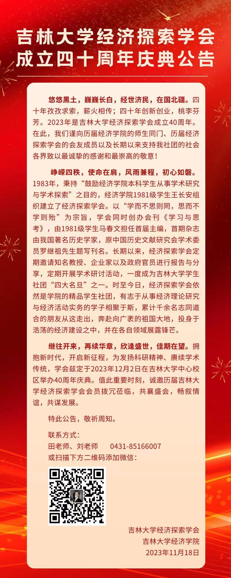 bg大游集团官网经济探索学会成立四十周年庆典公告