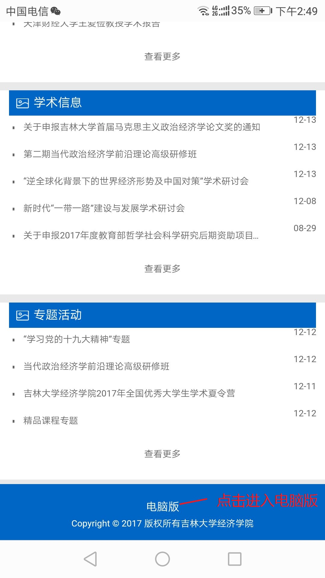 由于系统调用机制与web网站不同,手机版显示的内容和版块与新版网站有所不同或略少。如需查阅更详细内容,可以在手机版网站的底端点击电脑版访问。此外,网站上员工工作栏目转向的菁园网,不在本次手机版调用范围。