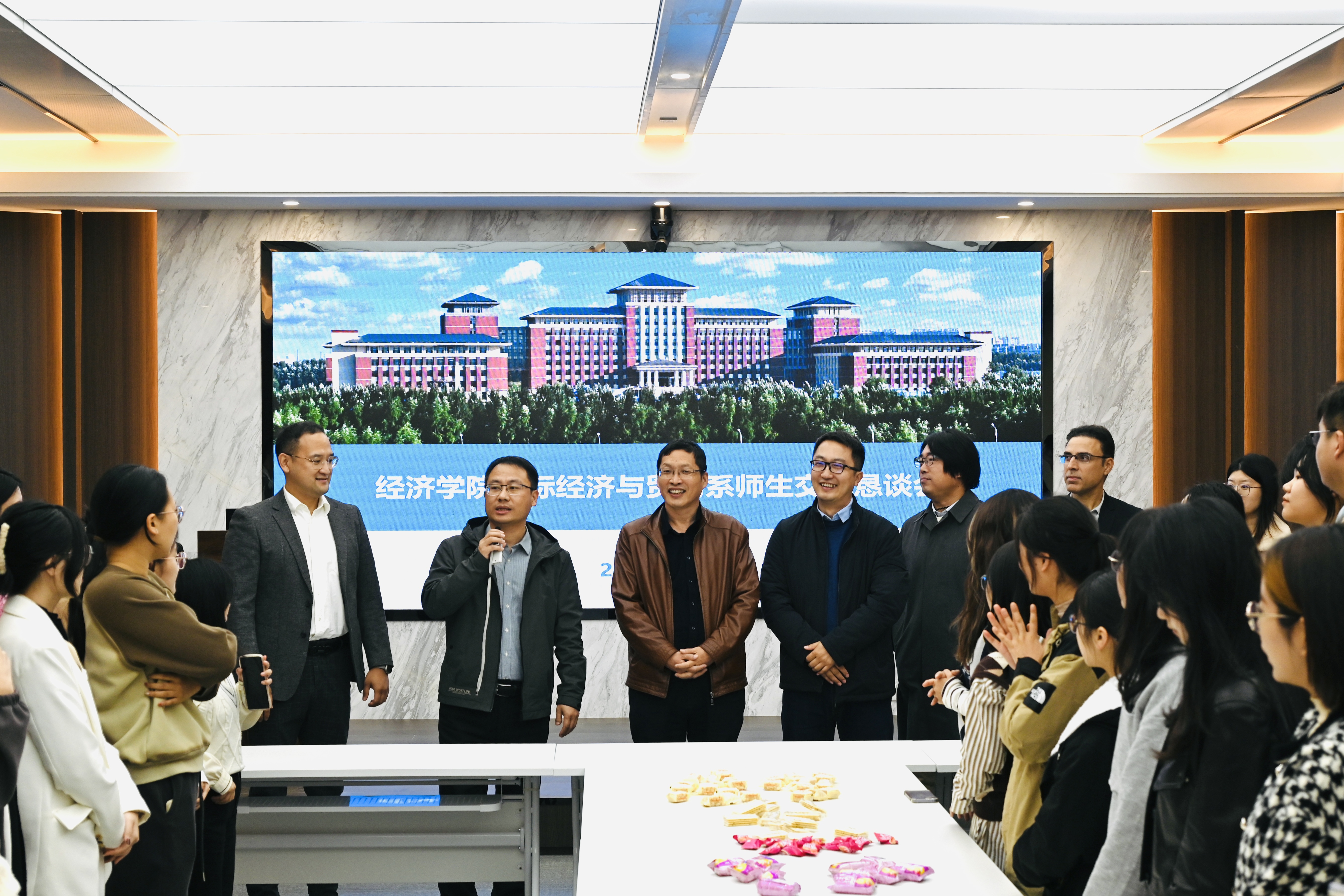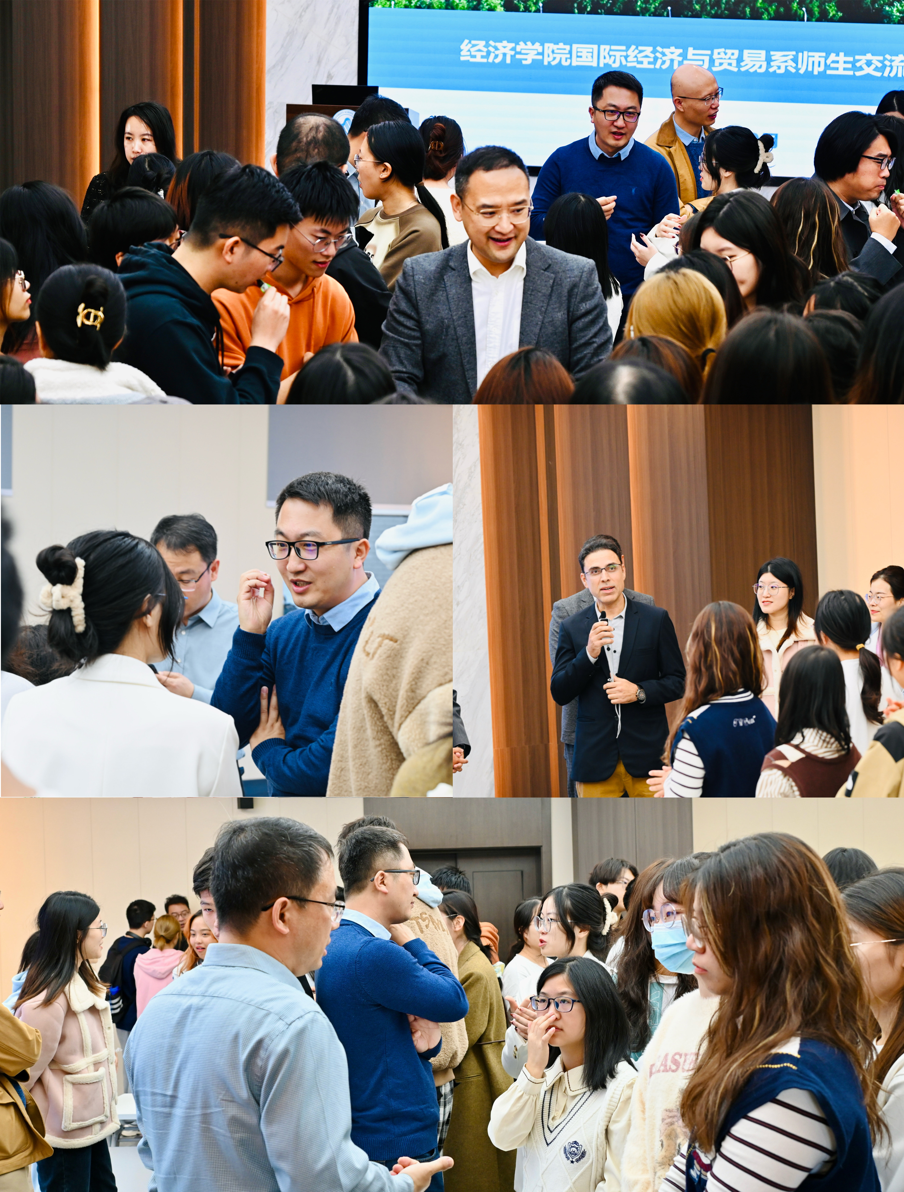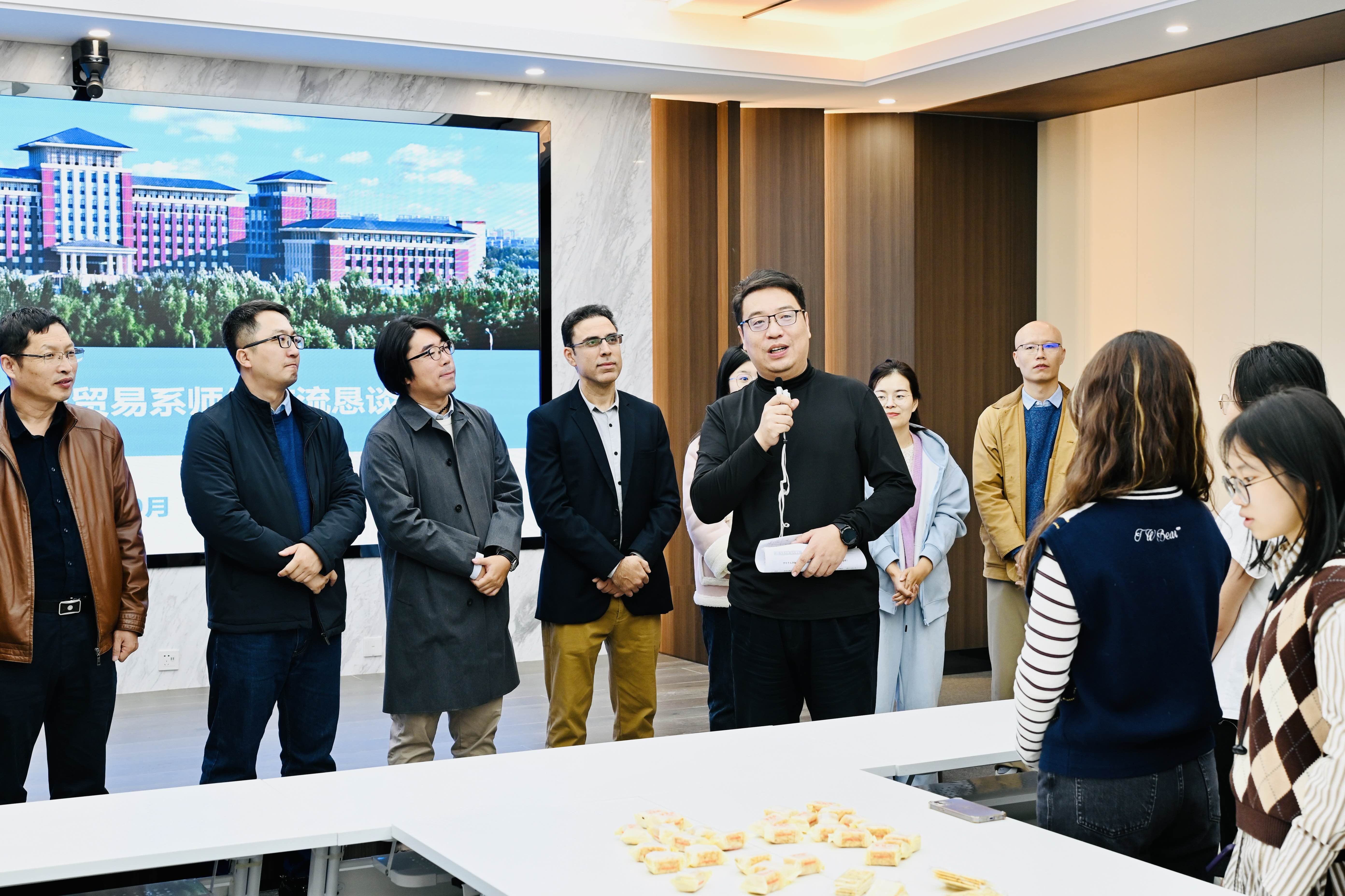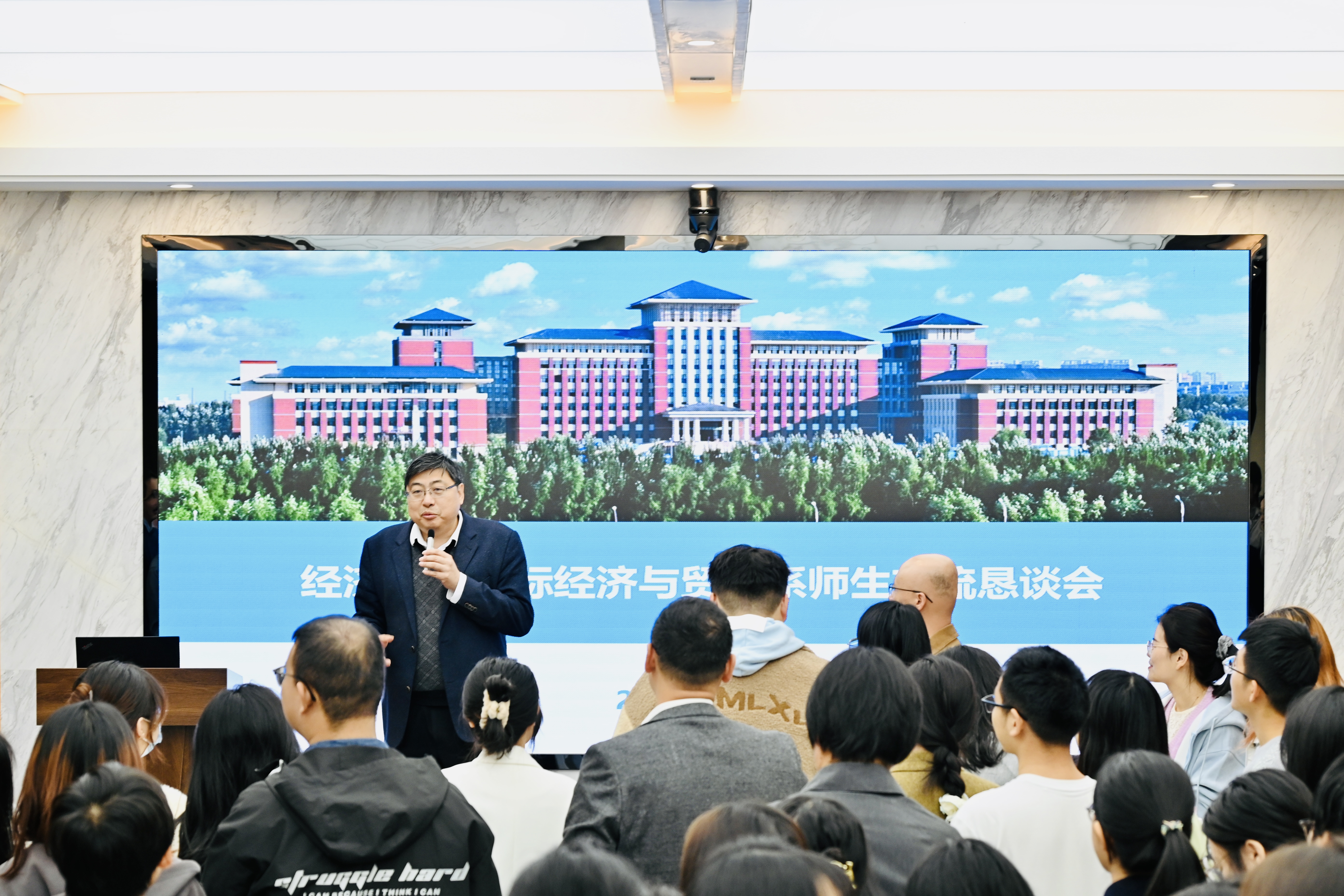 国际经济与贸易系主任孙黎对国际经济与贸易系教师情况进行介绍,加强了同学们对本系教师的教授课程、研究方向等方面的了解,为师生深入交流互动奠定基础。
