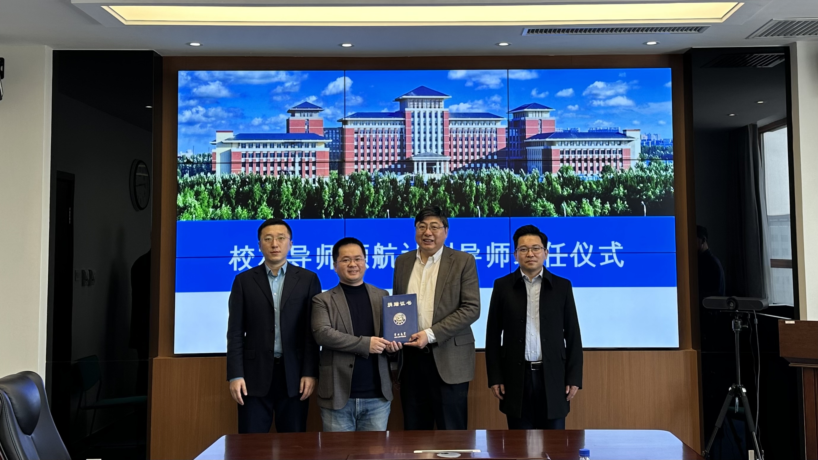 公司党委书记聂宏凯为三位新聘员工导师颁发了聘书。