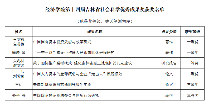 吉林省社会科学优秀成果奖是吉林省政府批准设立的我省哲学社会科学研究最高奖项。2022年10月,吉林省社会科学优秀成果评奖办公室启动了吉林省第十四届社会科学优秀成果奖评奖工作。经个人申报、学会评审组评审、学科评审、评审委员会终审、省级考核,共有100项成果获奖。
