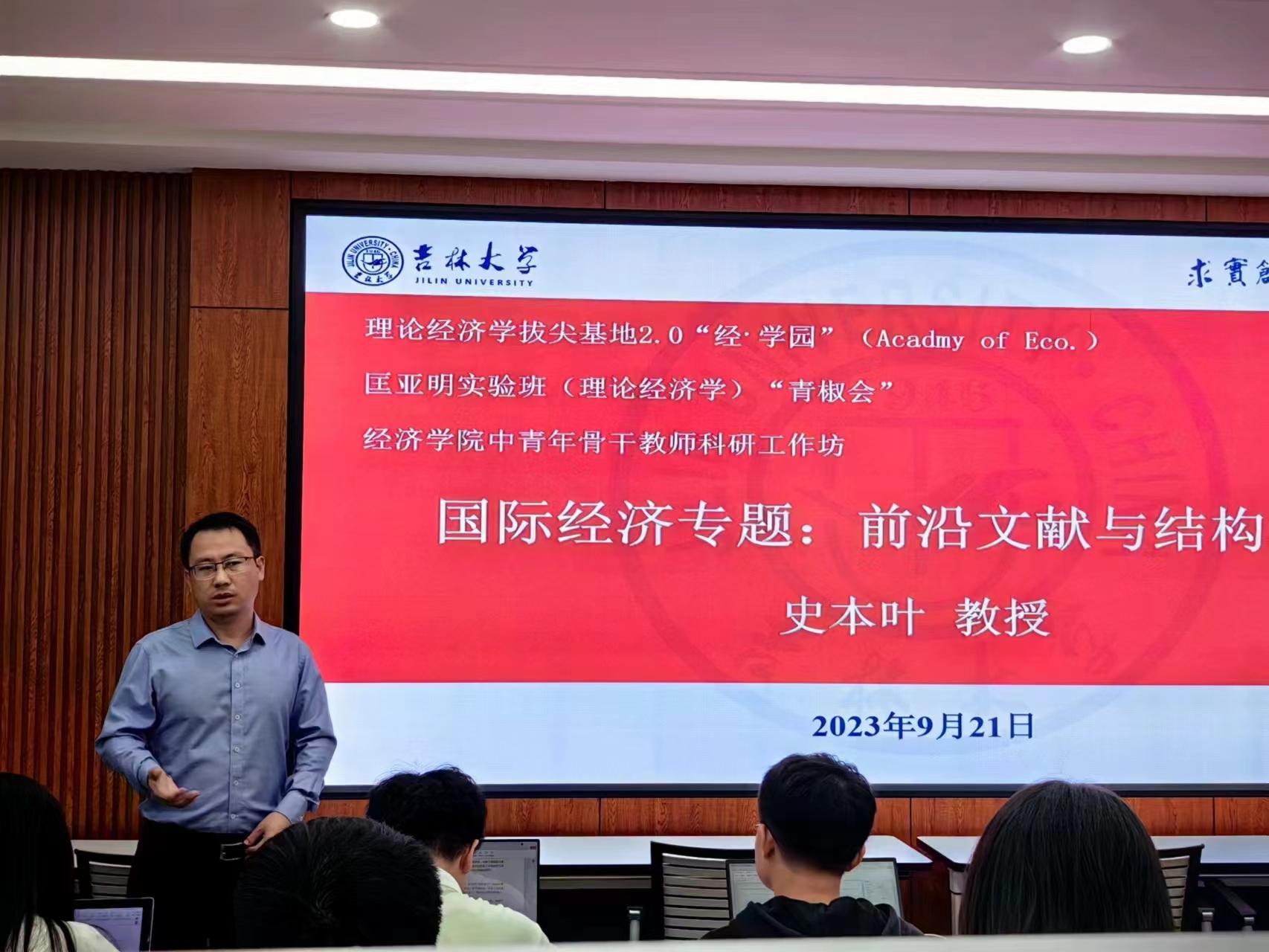 2023年9月21日晚,BG大游教授、博士生导师史本叶举办以《国际经济专题:前沿文献与结构模型》为主题的科研工作坊开放交流系列活动,BG大游部分中青年教师、20余位博硕研究生以及2022级理论经济学基础学科拔尖人才培养计划2.0基地(匡亚明实验班)的全体同学参加。公司分管本科教学、团队的副经理邵学峰教授主持。