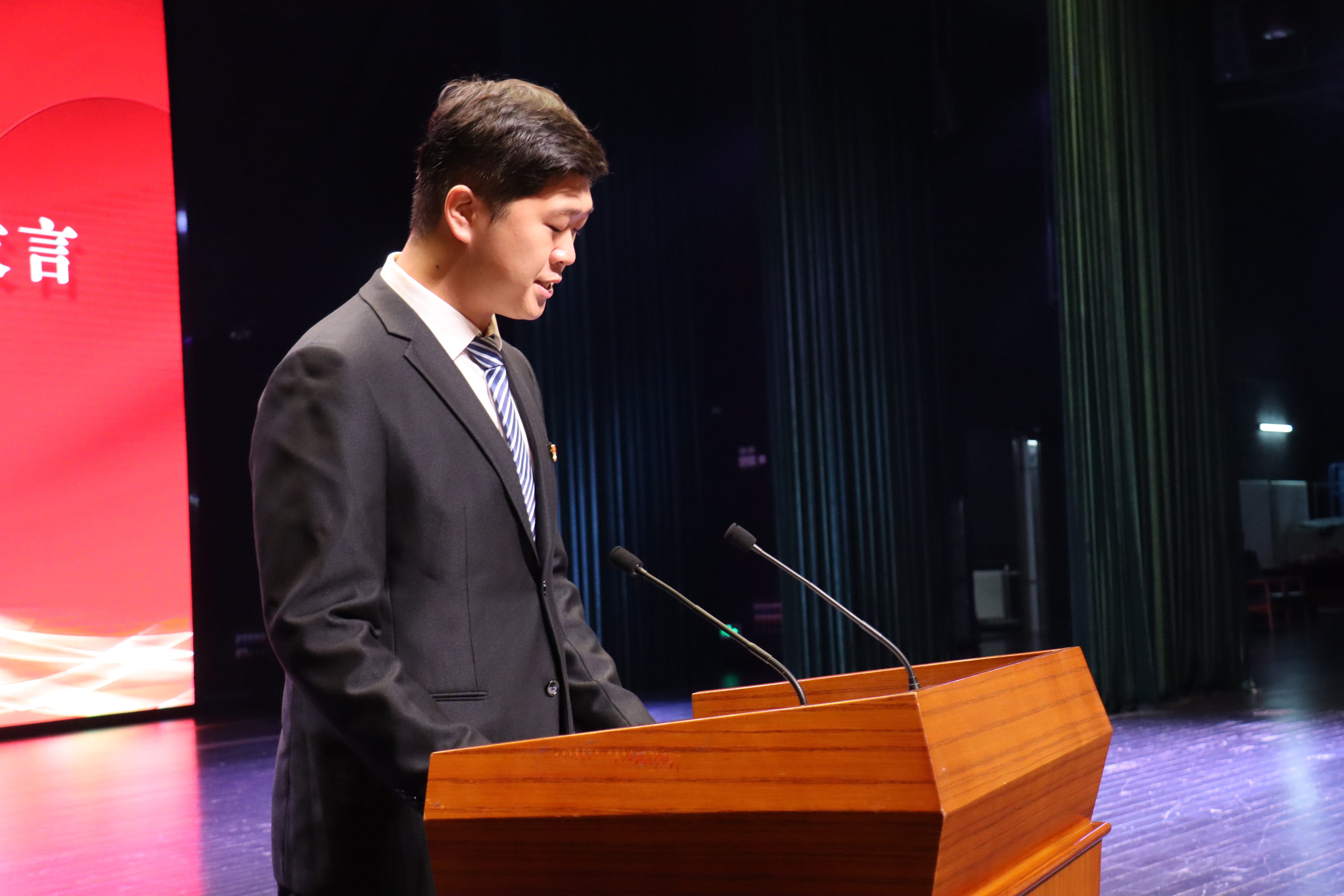 高年级员工代表、院员工会执行主席曲植对新同学们的到来表示热烈的欢迎,分享了自己在学习生活中的“三颗种子”,讲述了大学历程中自己的经验教训,以学长的视角为新生们指明了前进的方向,号召各位同学形成适合自己的思路、摆正良好的心态、珍惜内心的渴望,行动起来,永不言弃,始终沿着目标方向笃行不怠。