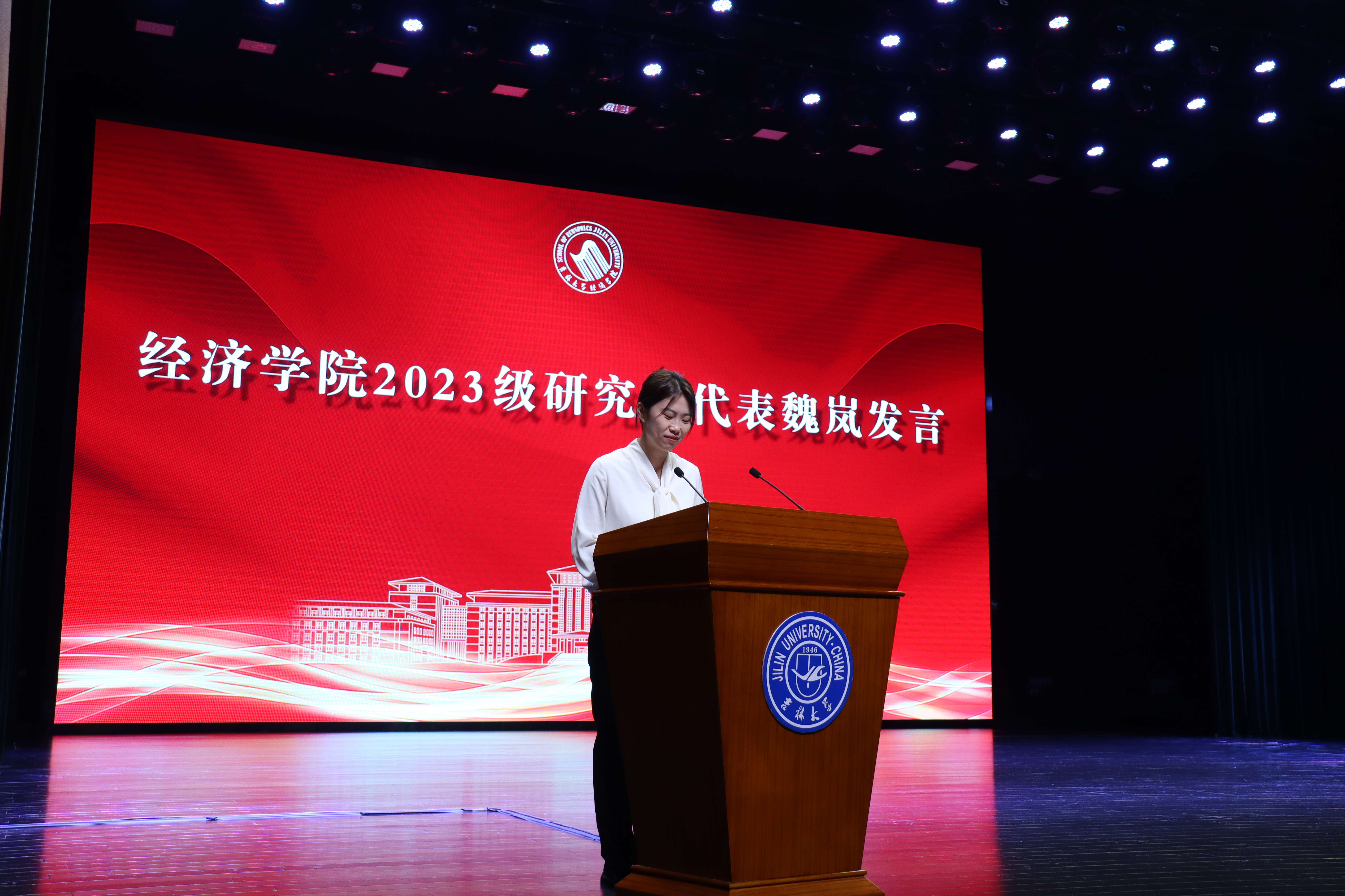 2023级本科生代表张澜桐、研究生新生代表魏岚分别分享了自己与bg大游集团官网初识的历程,讲述了个人成长经验,表达了初入校园对未来校园生活的憧憬与期待,号召全体新生努力学习,勇敢追梦,担当作为,为国家富强、民族复兴、人民幸福贡献力量。