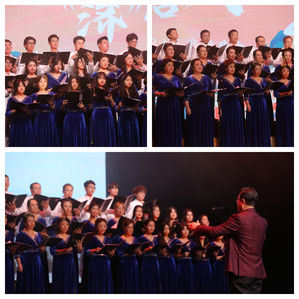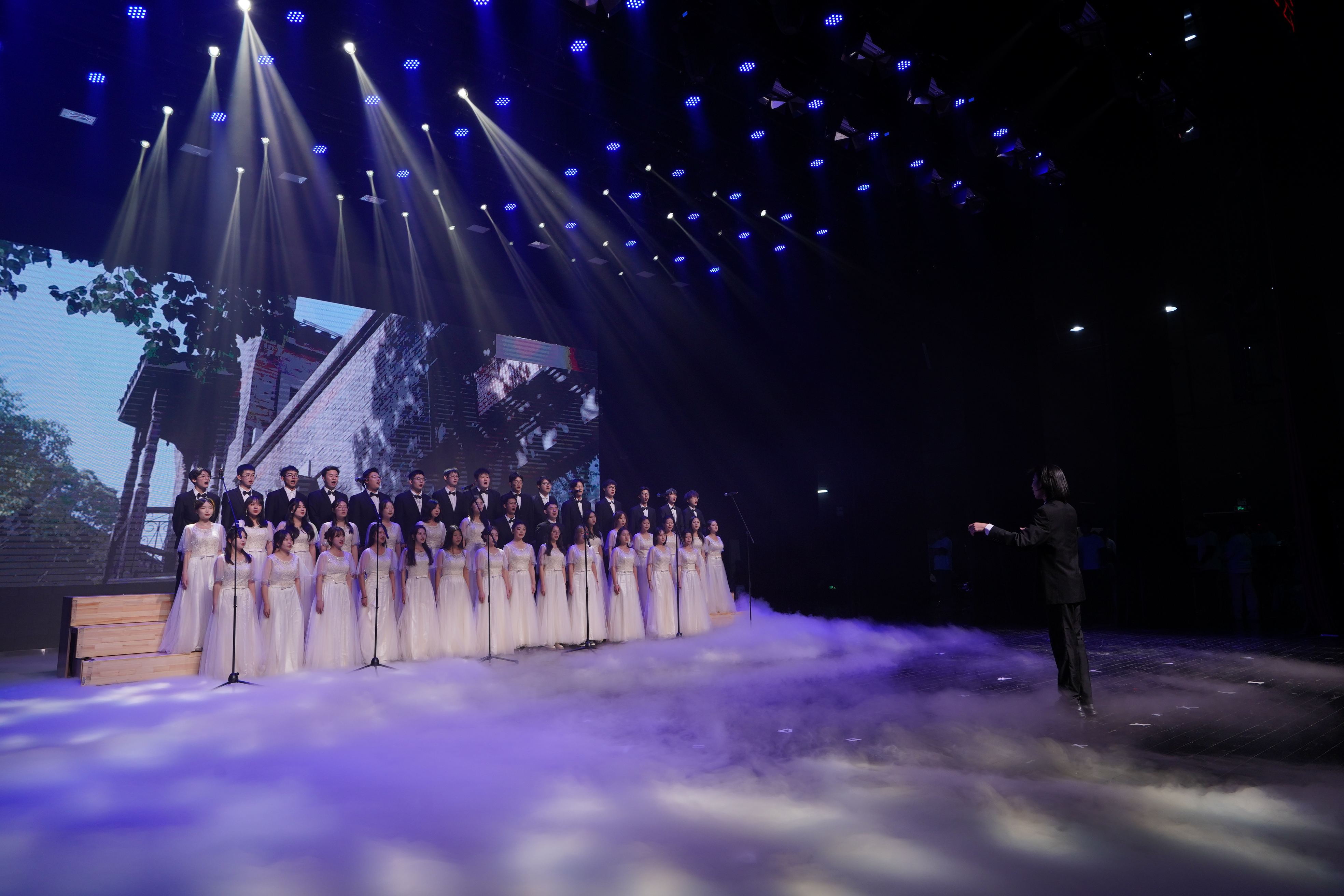 晚会在师生合唱团的合唱《初心向党永不忘》《走向复兴》中走向高潮。