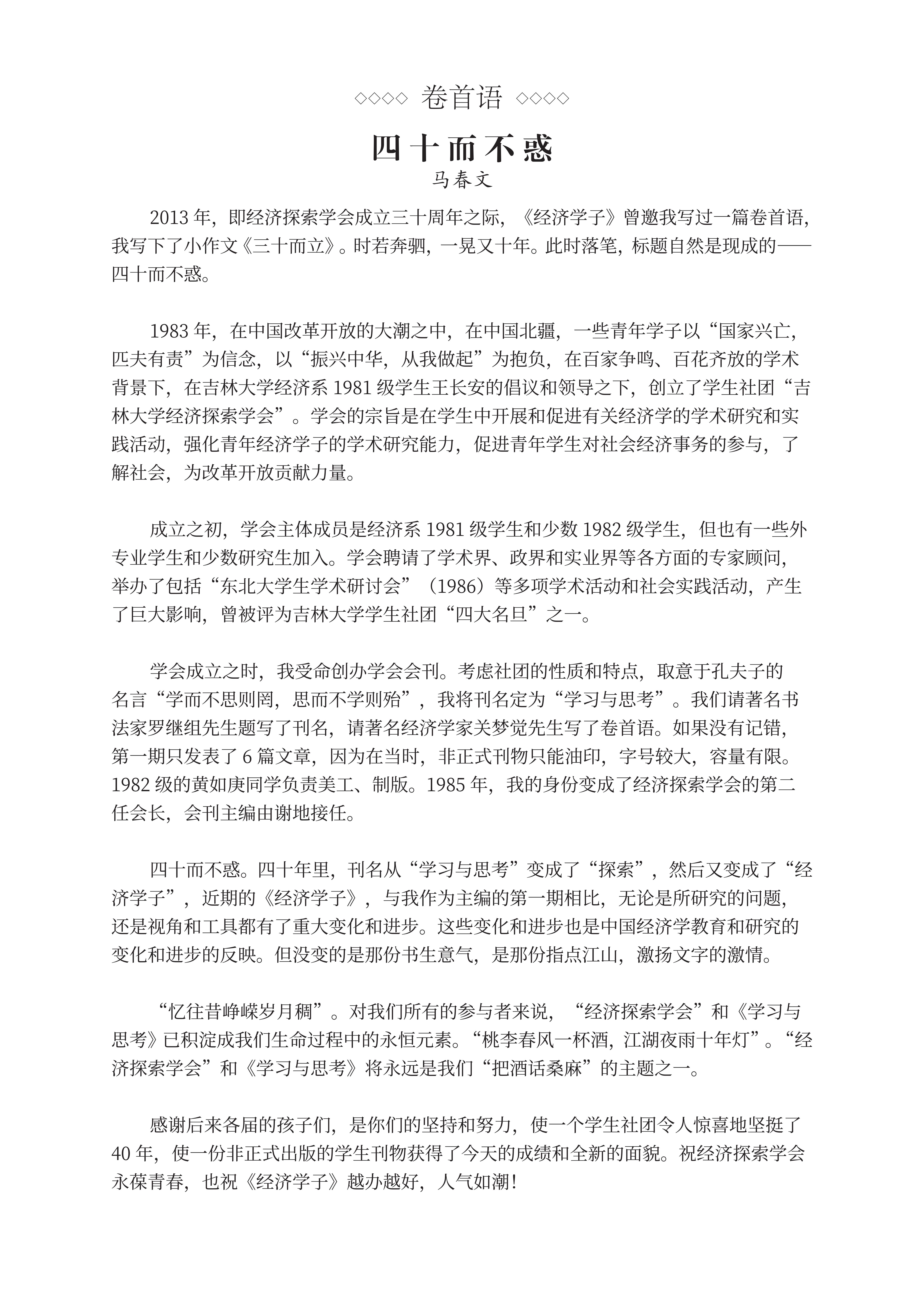 附1:《经济学子》特刊卷首语