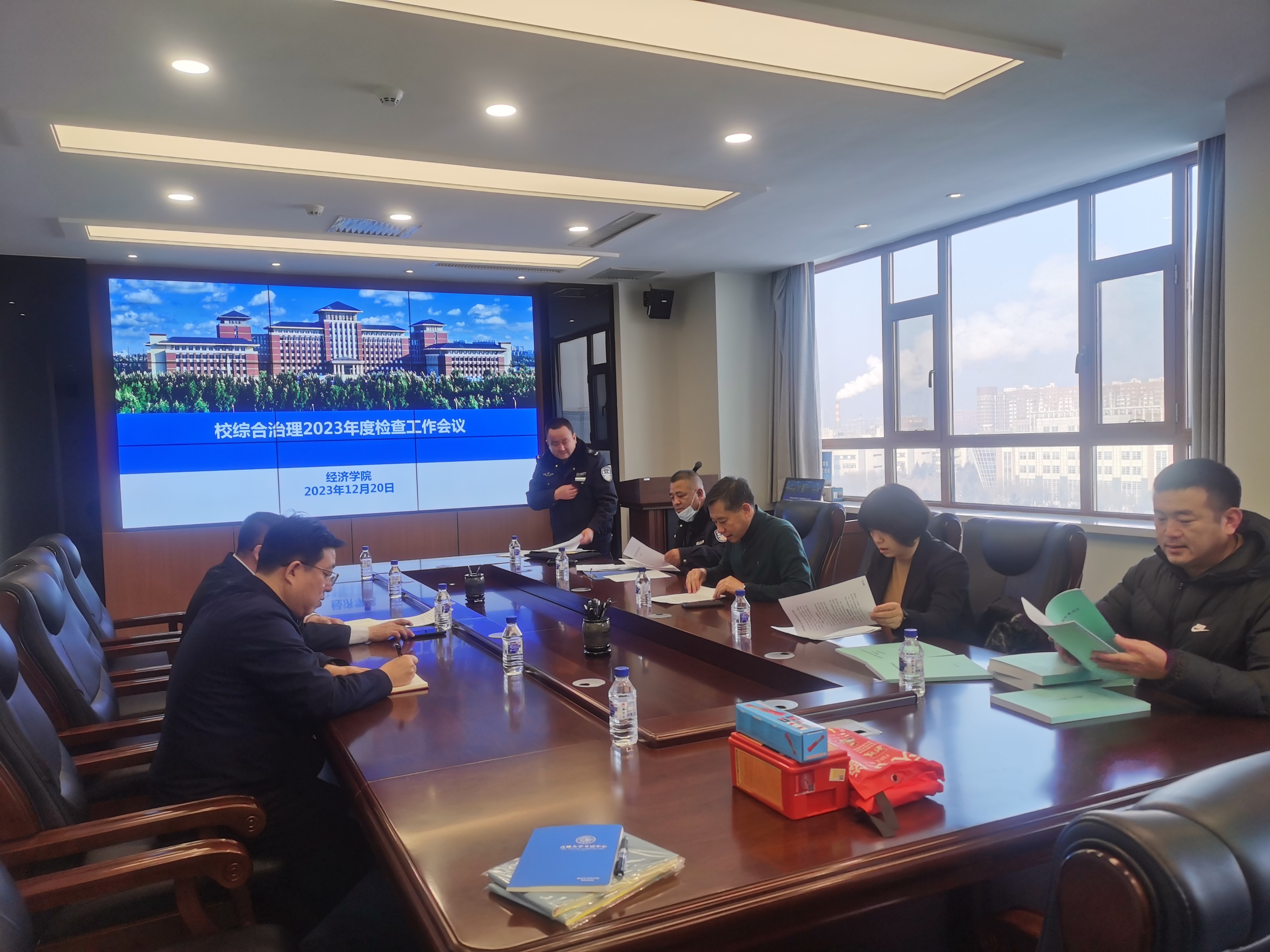 12月20日上午,BG大游2023年度综合治理、消防安全管理检查验收工作在东荣大厦BG大游808会议室召开。公司综合治理、消防安全管理工作第五检查组副组长闫君、贺淑娟及保卫处消防科、治安科工作人员对公司本年度治安综合治理、消防安全管理工作进行了检查验收。行政副经理邱立民、行政综合办公室主任潘国刚及图书资料室和实验教学中心相关老师参加会议。