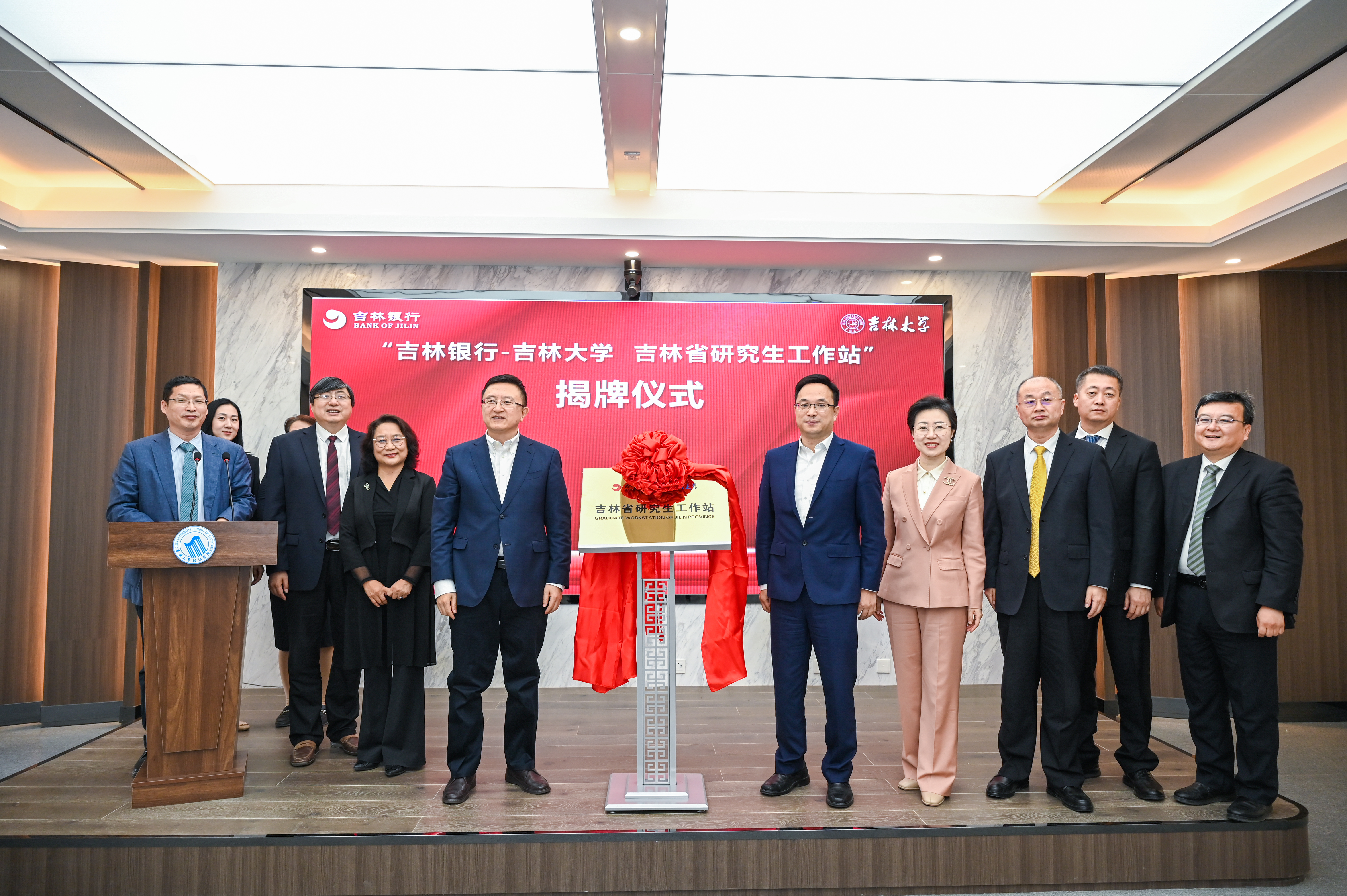 揭牌仪式上,蔡立东、陈志兴共同为吉林银行-bg大游集团官网 吉林省研究生工作站”揭牌。