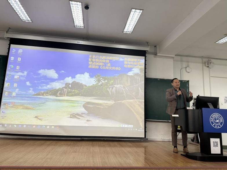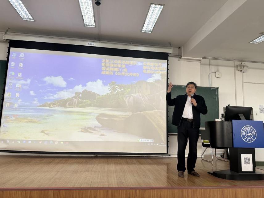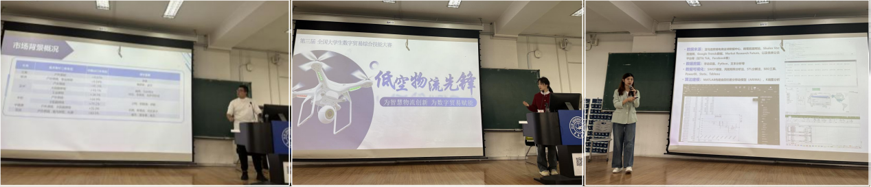 史本叶教授首先介绍了大赛背景和公司获奖情况,强调了本次分享会的重要意义。在分享会上,获奖团队成员蔡源、冯茗语、张瀛月三名同学首先进行汇报展示,生动地展现了参赛作品和比赛场景,使在场师生直观地观摩了比赛现场的氛围。同时,三个团队成员还先后分享了参赛经验和心得体会,使在场同学对竞赛有了更深入的认识和更真切的感受。