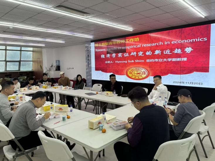 学术分享午餐会尾声,Hyoung Suk Shim教授与参会的青年教师进行了热烈的互动,青年教师提出相关问题并与Hyoung Suk Shim教授交流自己的想法,双方都进行了积极的讨论。本次活动在给予了青年教师启发的同时,也对于目前经济学实证研究等问题进行了深入探讨,拓展公司学术研究方向,注入新活力。