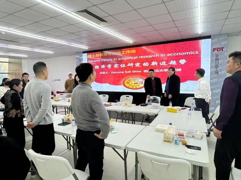 在活动开始,各位青年教师与Hyoung Suk Shim教授进行相互介绍,互相了解学术发展背景,Hyoung Suk Shim教授耶讲述自己的科研学术经历,给予青年教师启发。同时,丁一兵经理也参与了此次活动,与Hyoung Suk Shim教授深入分析了当代经济学发展趋势,对于青年教师提升自身科研研究能力,拓宽学术视野有重要意义。