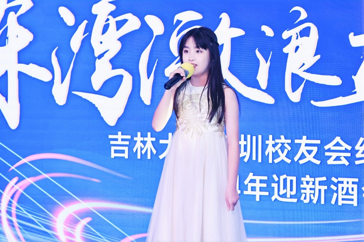 夜幕降临,91级国际金融专业杜伟强学长的女儿杜嘉琪小朋友,以一曲空灵动人的《Can You Feel the Love Tonight》,揭开了迎新酒会的序幕。作为最具活力与希望的“吉二代”,她用歌声把祝福传递给了在场的深圳经管“新一代”们。