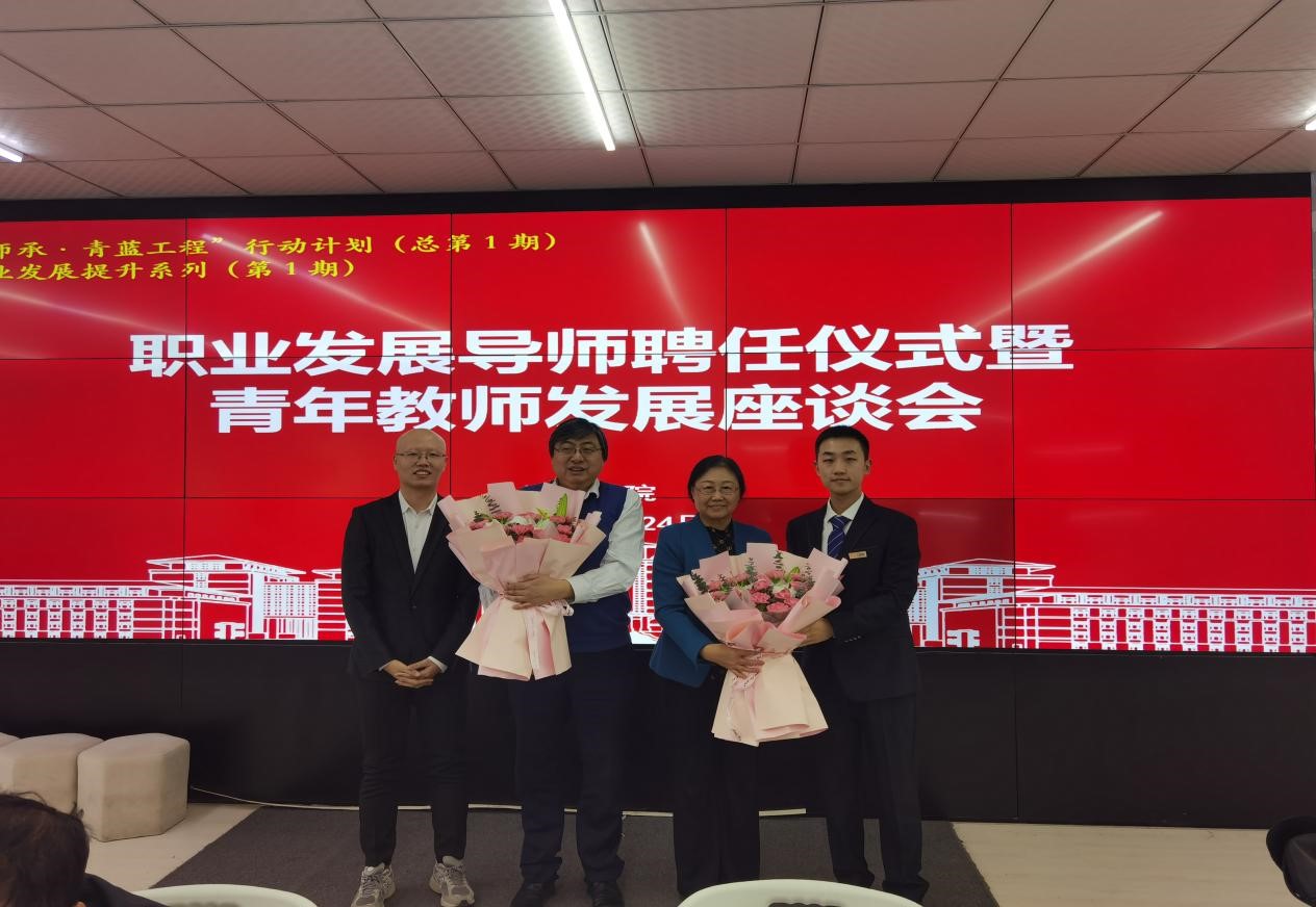 在职业发展导师聘任仪式环节,丁一兵经理首先对“师承·青蓝工程行动计划”活动方案进行了介绍,他强调了师承以及团队合作在团队建设和团队队伍建设尤其是青年教师队伍建设的重要性,并指出高质量科研成果对团队建设和青年人才个人职业发展中的关键作用,鼓励青年教师在职业生涯起始阶段就要有对高标准高水平高质量科研成果的追求和对标。接着,党委书记聂宏凯为职业发展导师杜莉教授、丁一兵教授颁发聘任证书,青年教师白晨江、李宁宁分别向导师献花。