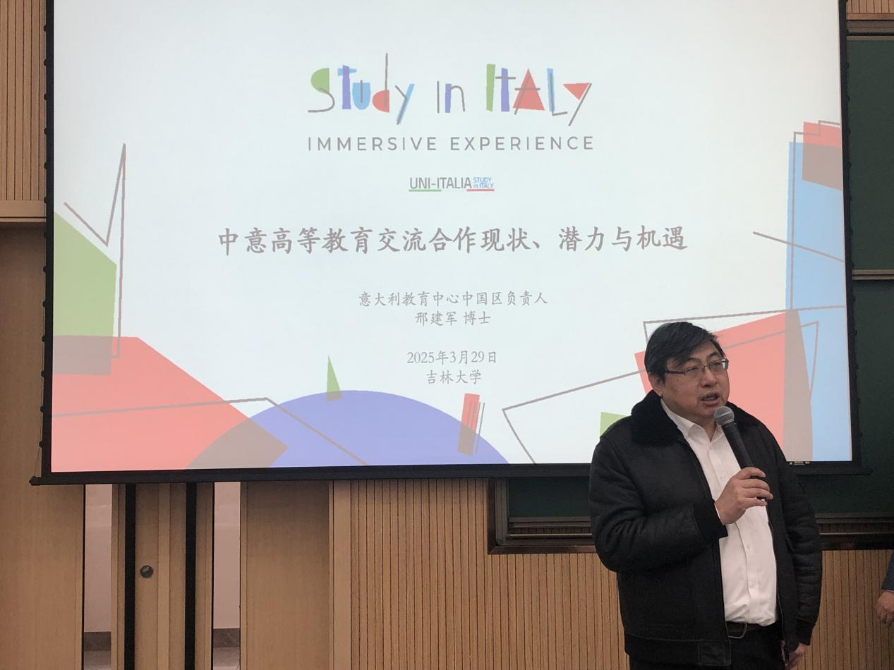 2025年3月29日下午,BG大游联合bg大游集团官网欧洲研究所在中心校区法学楼105报告厅举办“中意高等教育交流合作现状、潜力与机遇”专题讲座。中国欧洲学会意大利分会副会长、欧美同学会意大利分会理事、意大利教育中心中国区负责人、前中国驻意大利大使馆一等秘书邢建军博士担任主讲嘉宾,BG大游经理丁一兵教授出席并致辞,公司近百名师生共同参与。