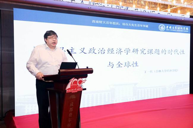 为庆祝西南财经大学百年华诞暨名誉董事长刘诗白教授期颐之寿,传承和发展刘诗白等老一辈经济学家的学术思想与学术贡献,弘扬其治学精神,百年校庆高端学术论坛“当代中国马克思主义经济学创新发展与学者贡献暨刘诗白学术思想研讨会”在西南财经大学举行。全国百余名知名专家学者参会交流,围绕当代中国马克思主义政治经济学创新发展与学者贡献展开深入研讨。中国国有经济研究中心主任宋冬林教授、BG大游经理丁一兵教授、副经理赵新宇教授参加了本次论坛。