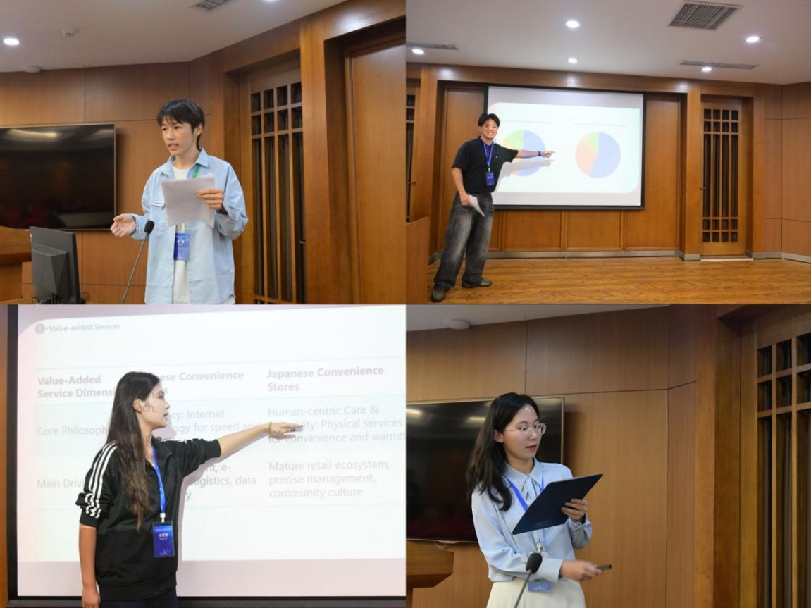 前四天为学术攻坚阶段,各小组全程以英语展开密集研讨。来自关西公司大学的员工结合日本本土案例提供国际视角,例如在便利店议题中分享日本品牌的精细化运营策略,在青年消费观议题中补充日本社会福利政策对储蓄观念的影响;bg大游集团官网员工则立足中国市场实际,提供宠物经济消费数据、旅游经济区域特色案例等本土化研究支撑。两校员工在观点碰撞中不断完善研究框架,课余时间更分工协作打磨PPT——从英文数据图表的精准核对,到汇报逻辑的反复优化,每一处细节都凝聚着跨校协作的智慧,也让员工们在磨合中提升了英文学术表达与跨文化沟通能力。