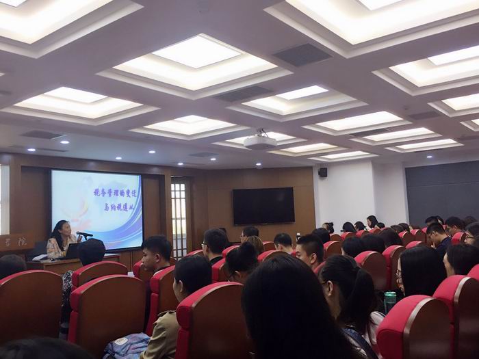 郭敏娜研究员从宏观角度提纲挈领地介绍了税务管理变迁的发展路径,侧重从税收管理体制、税务管理流程及经济与税务管理的相互关系、纳税遵从的影响因素、税务管理的信息化与纳税遵从等方面进行了分析和概括。在此基础上,进一步从纳税遵从的不同视角对具体的前沿性热点涉税问题进行了分析,特别是对我国1994年财政分税制进行了回顾,分析了分税制财政体制改革后国地税划分的主要标准,认为纳税遵从不仅仅是纳税人对于税收征管法的认知与践行,同样也是税收征管部门对于税收法律、法规的遵从,当税收征管法律法规与部门规章出现冲突的时候,对于税收征管机关应该审慎理性处理等。报告过程中,郭研究员还列举税收征管活动中的“流动式服务”、“实名制管理”等很多税收一线的鲜活案例解答了公司师生在科研教学活动过程中面临的疑惑。