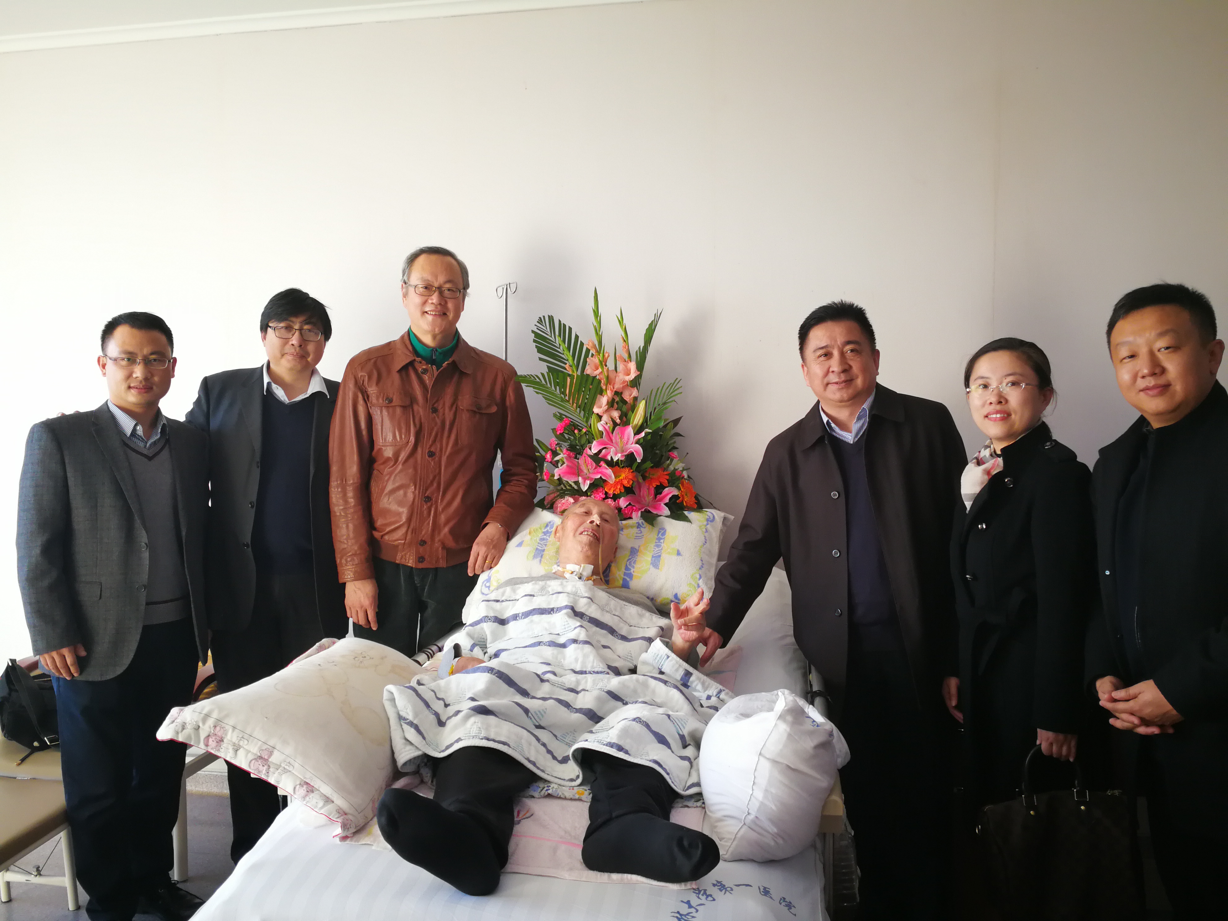李晓经理、陈密书记首先详细询问了池元吉教授的治疗情况和身体康复情况,并代表全院教师向池元吉老教授表达了关切慰问。李晓经理介绍说池元吉教授为BG大游的团队建设和发展作出了巨大贡献,为人乐观豁达、严谨治学,是全体教师学习的楷模。已90岁高龄的池元吉教授在精心治疗和陪护下精神状态良好,虽表达不清晰仍努力表示感谢之意,并与大家进行了简单、亲切的交流,气氛轻松愉快!