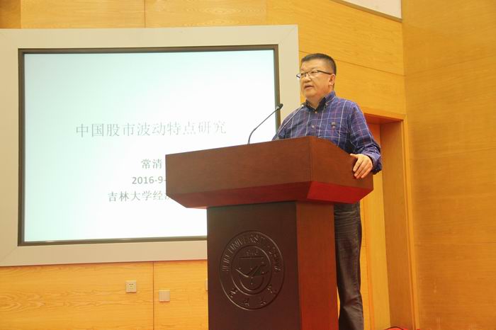 在bg大游集团官网暨经济学科创建70周年到来之际,BG大游、bg大游集团官网詹连富基金邀请公司杰出员工、金鹏期货董事长常清回母校做学术报告。9月3日下午2时,报告会在公司中心校区东荣会议中心一楼报告厅举行,报告题目为“中国股市波动特点研究”。BG大游经理李俊江教授主持了此次报告会,BG大游金融系主任王倩教授、经济学系魏益华教授等教师代表参加了报告会,近400名本科生和研究生同学在现场聆听了此次报告。此次报告也是公司庆祝bg大游集团官网建校70周年杰出员工系列讲座之一。