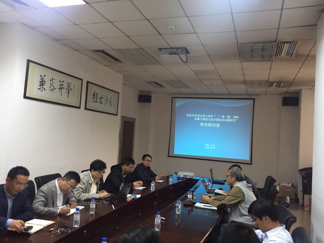 2016年9月23日,国家社科基金重大项目"'一带一路'战略实施中推进人民币国际化问题研究"学术研讨会在BG大游学术交流中心(东荣大厦一楼114会议室)召开。BG大游副经理、重大项目首席专家李晓教授主持了会议。出席此次研讨会的有四位项目子课题负责人,分别为中国社科院世界经济与政治研究所张明研究员、BG大游丁一兵教授、李俊久教授、于震教授。还有课题组部分成员BG大游王倩教授、王达副教授、冯永琦副教授、张虎博士、王皓博士和张坤博士,以及BG大游世界经济专业部分博士研究生和硕士研究生。