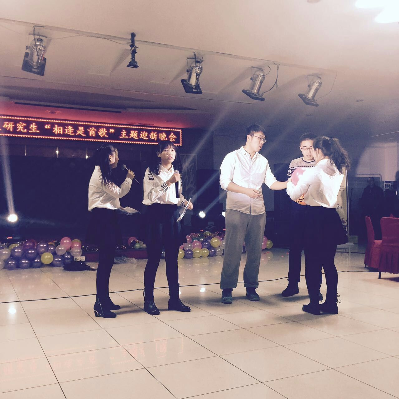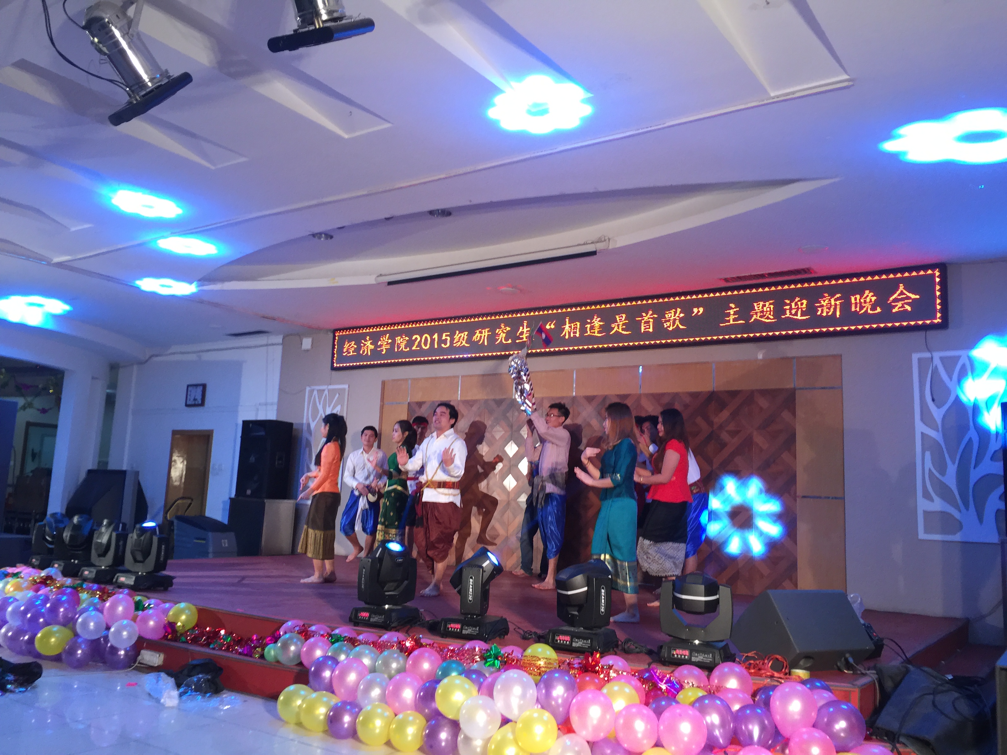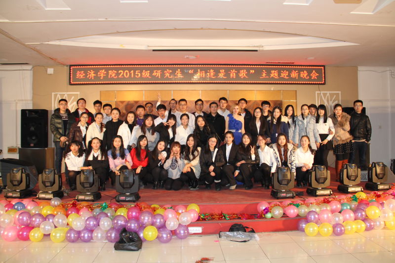 BG大游2015级研究生“相逢是首歌”主题迎新晚会于12月11日晚在莘子园三楼成功举办。公司党委副书记张倩老师、经济系赵新宇教授、金融系周佰成教授、外籍教师海森特老师,公司办公室郭薇老师、张坤老师、高杉老师,以及全体2015级研究生和职工同学共同参加了此次晚会。