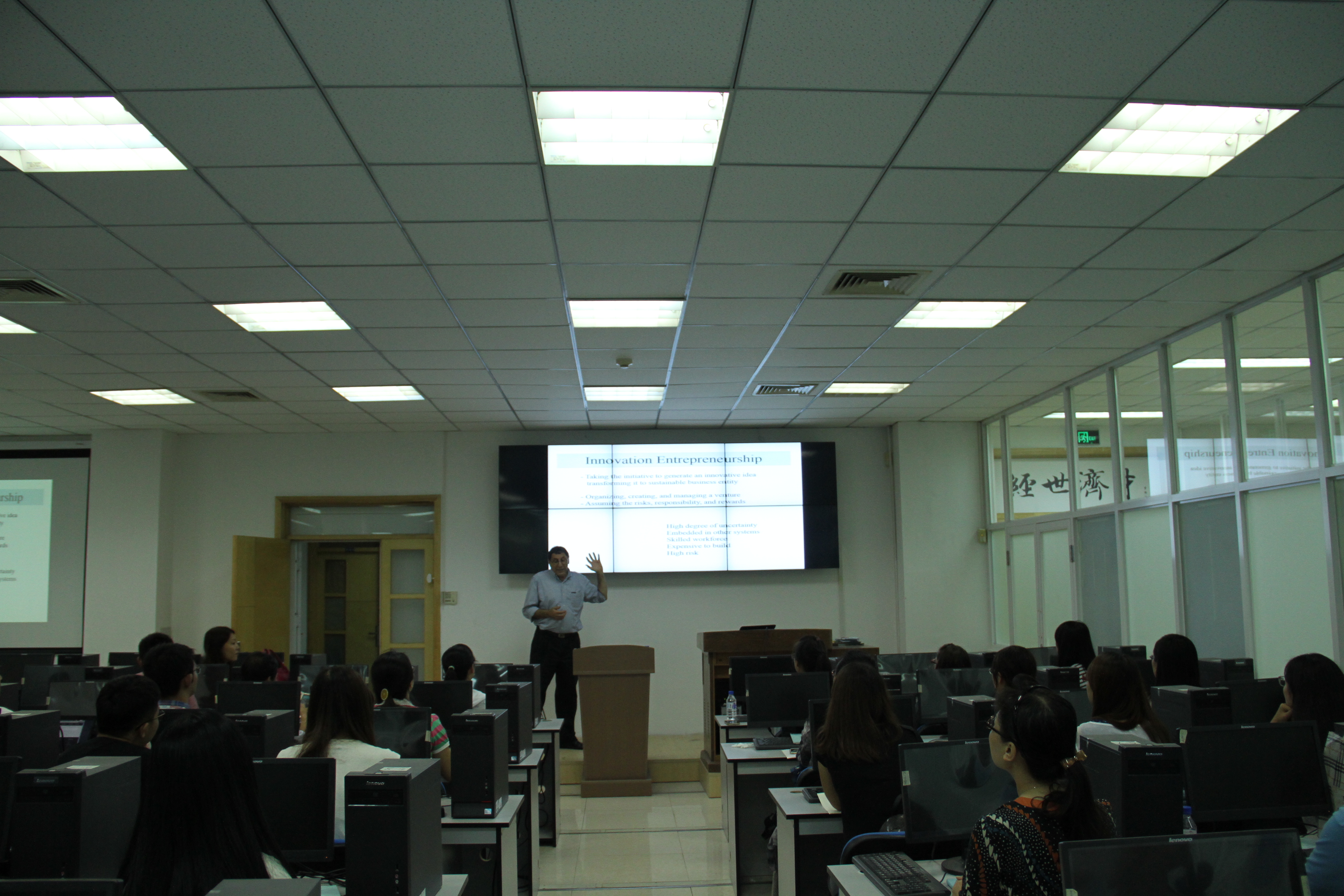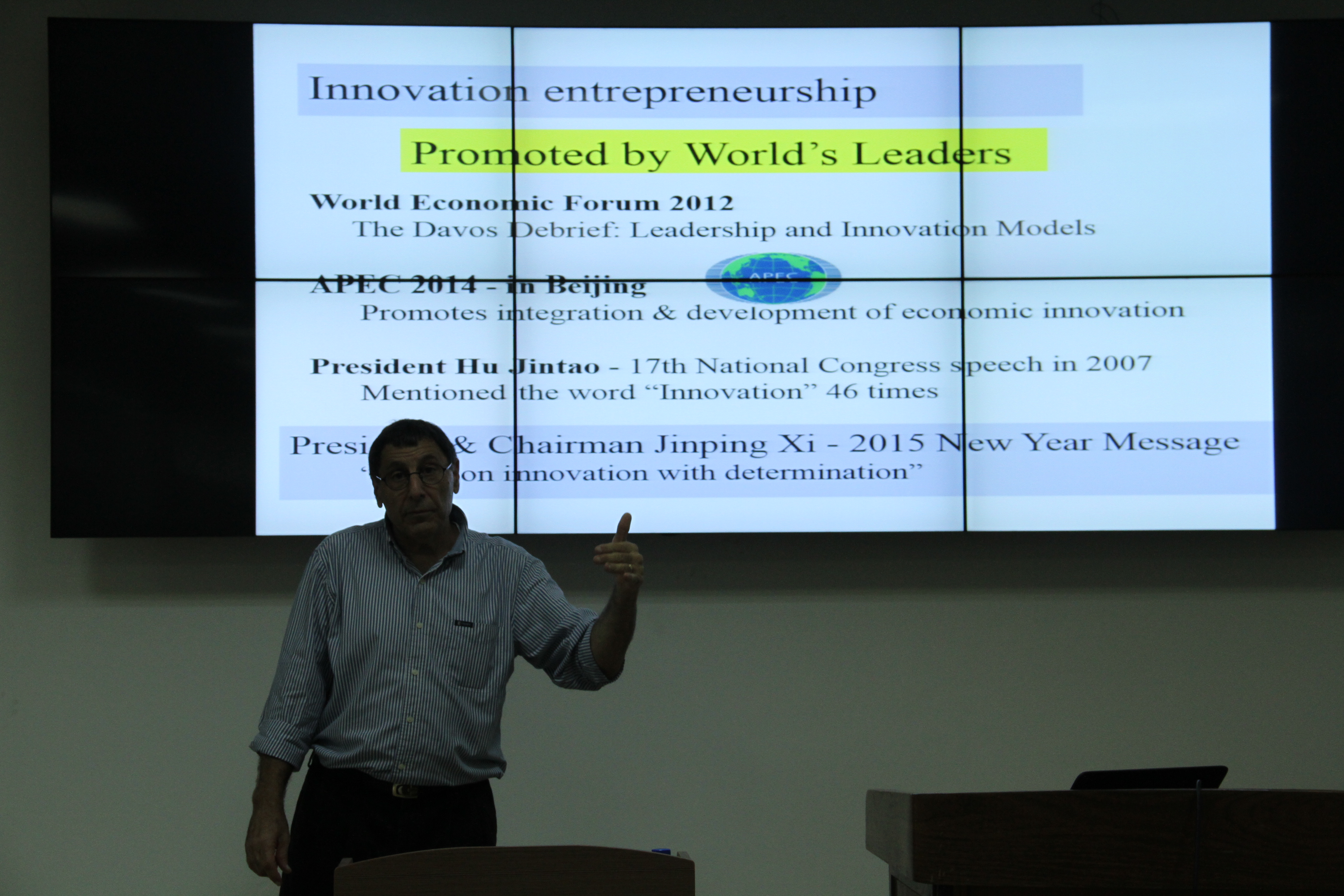 中以创新创业合作研究中心副主任、以色列本•古里安大学约西•达什蒂(Yossi Dashti) 教授远道而来,为BG大游师生作了一场题为“创新型技术创业——以色列成功因素”的精彩讲座。约西•达什蒂教授在演讲中首先强调了中以之间加强在创新创业领域的联系的重要性,他回顾了中以中心的成立,高度认可了BG大游和中以中心举办一系列活动的重要目的和深远意义。从对“创新”、“创业”的内涵和外延认识讲起,他分析了国家官方意识和民间行为,揭示了促进以色列成为创新强国的一系列传统以及非传统的重要因素,进而揭开了以色列迅速腾飞奇迹背后的秘密。结合PPT图片展示,约西•达什蒂教授向大家展示了以色列所面临的恶劣自然环境等不利的外部条件,为在座师生阐述了以色列如何通过科技创新化不利为有利、化腐朽为神奇的发展历史。