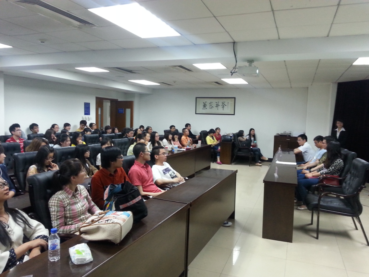 2014年5月28日18:30,BG大游研究生会在东荣大厦804教室举办了“学术与人生”系列讲座第三场——研究生求职经验交流会,交流会邀请到了2012级金融专业硕士李昂、李巩、冯青双,2012级金融学硕士朱孝祯、翟璐,2012级政治经济学硕士陆寅宏等六位嘉宾,与来自校内多个公司的同学,分享了求职经验感悟。